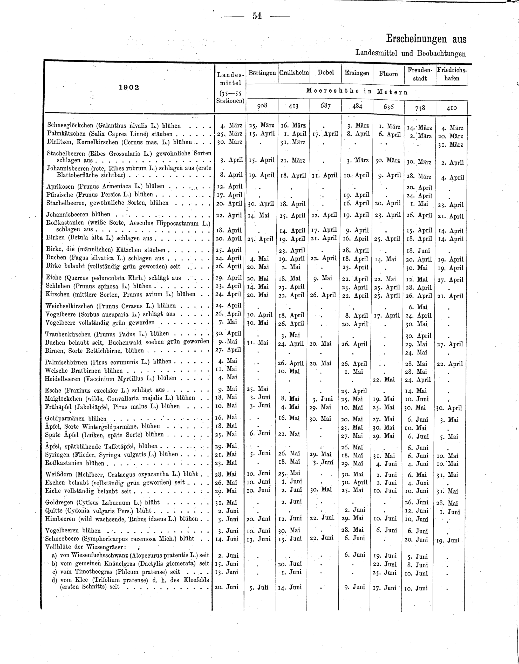 Erscheinungen aus dem Pflanzenreich, Landesmittel und Beobachtungen ausgewählter...