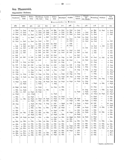 Erscheinungen im Pflanzenreich, Landesmittel und Beobachtungen ausgewählter Stat...