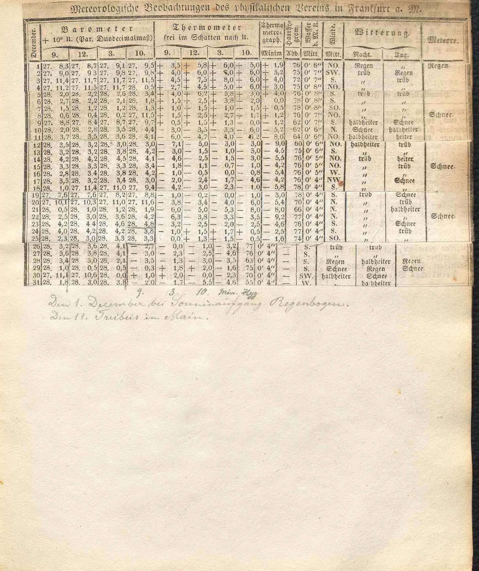 Meteorologische Beobachtungen des Physikalischen Vereins zu Frankfurt