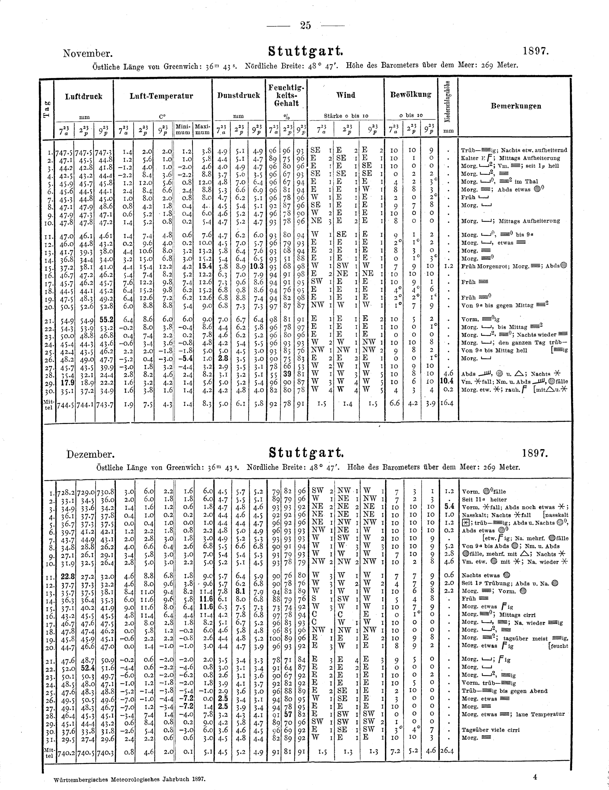 Tägliche Beobachtungen von Stuttgart