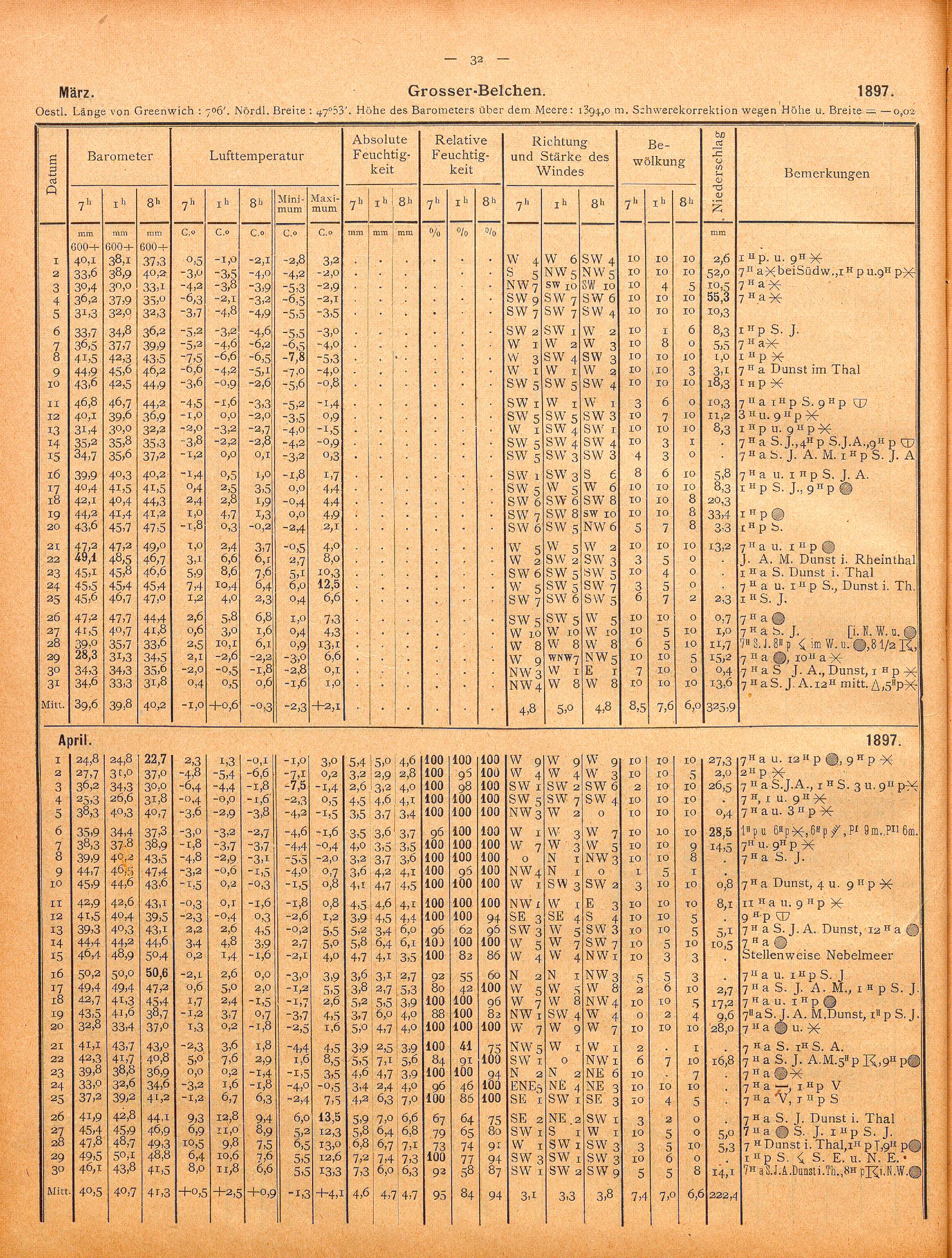 Einzelbeobachtungen von Grosser-Belchen