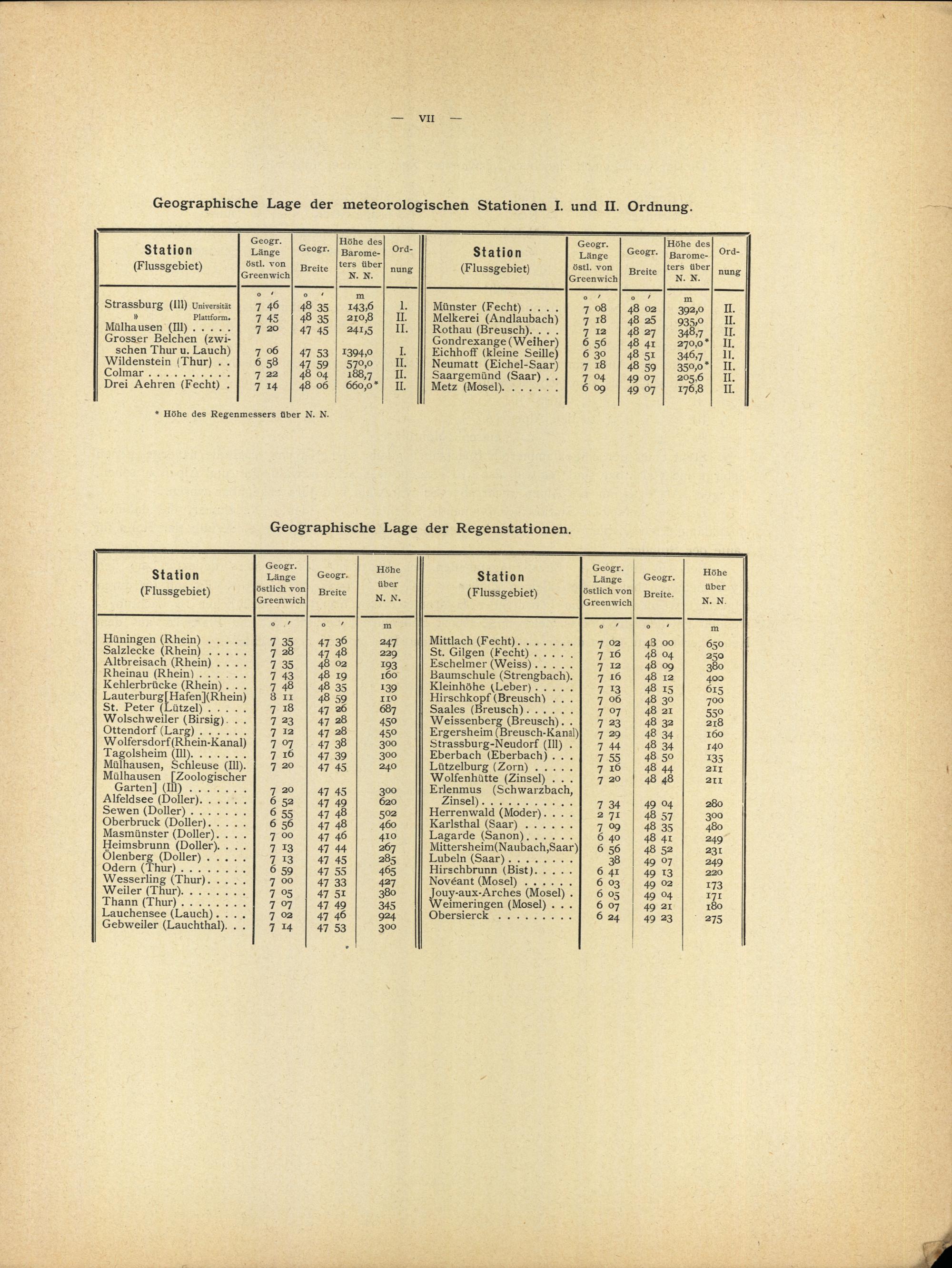 Geographische Lage der meteorologischen Stationen I. und II. Ordnung
