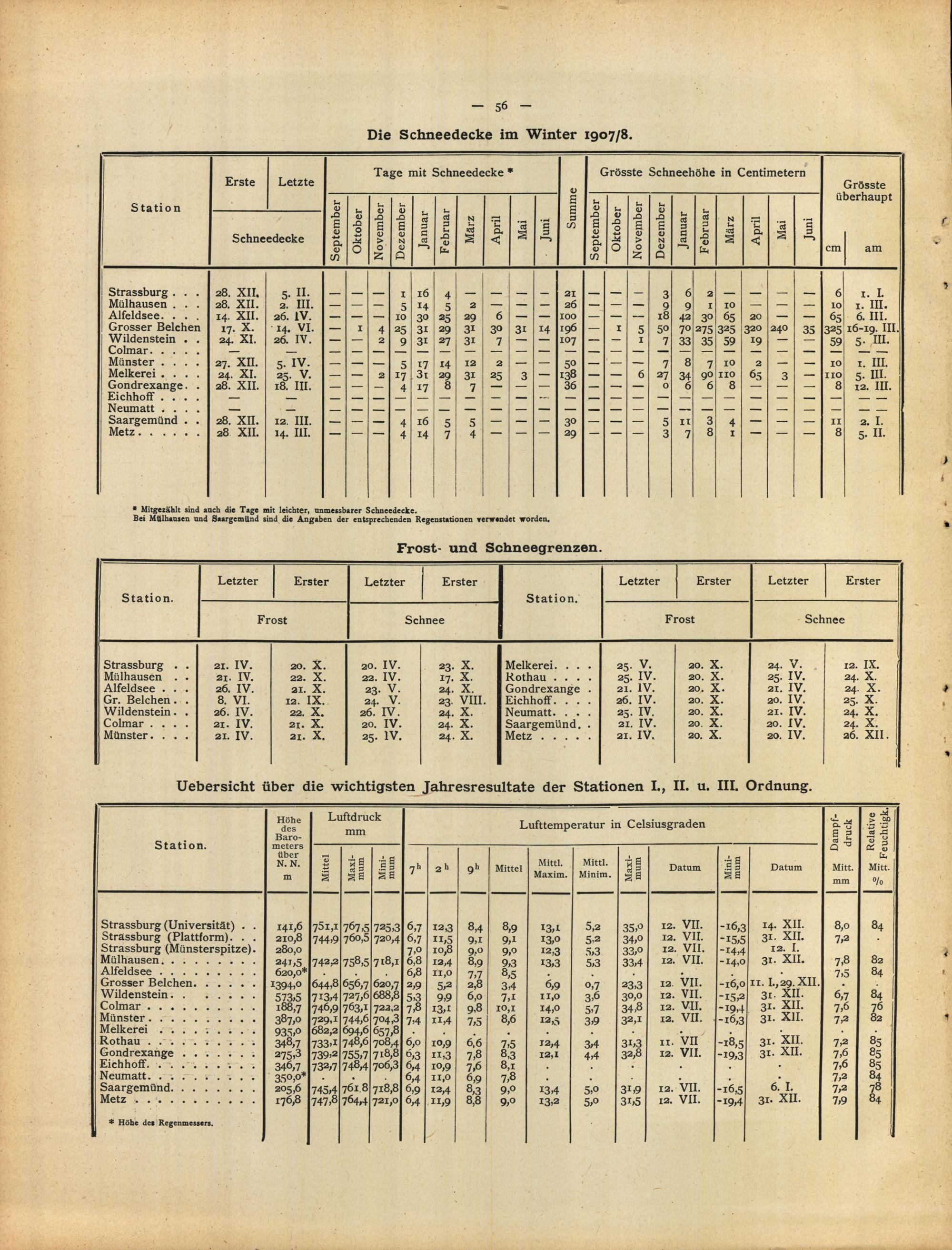 Übersicht über die wichtigsten Jahresresultate der Stationen I. II und III. Ordnung