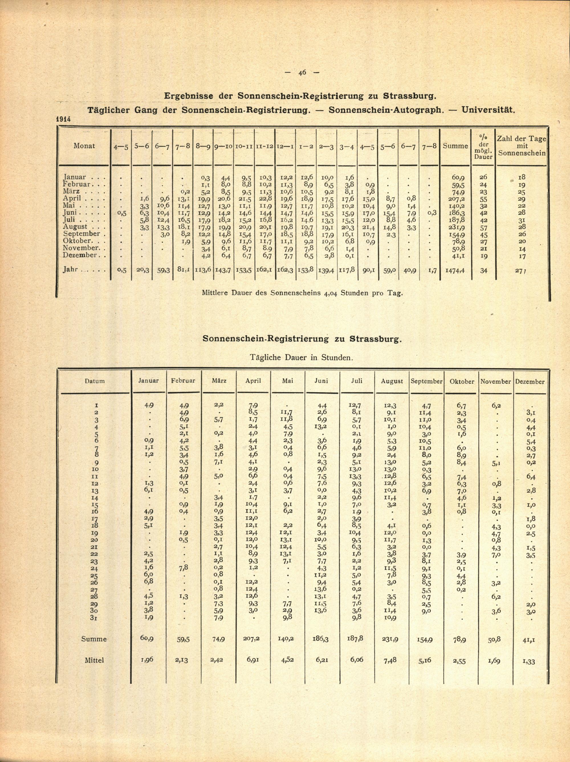 Die Niederschlags-Verhältnisse zu Saargemünd in Lothringen in der 20jährigen Periode 1896-1915