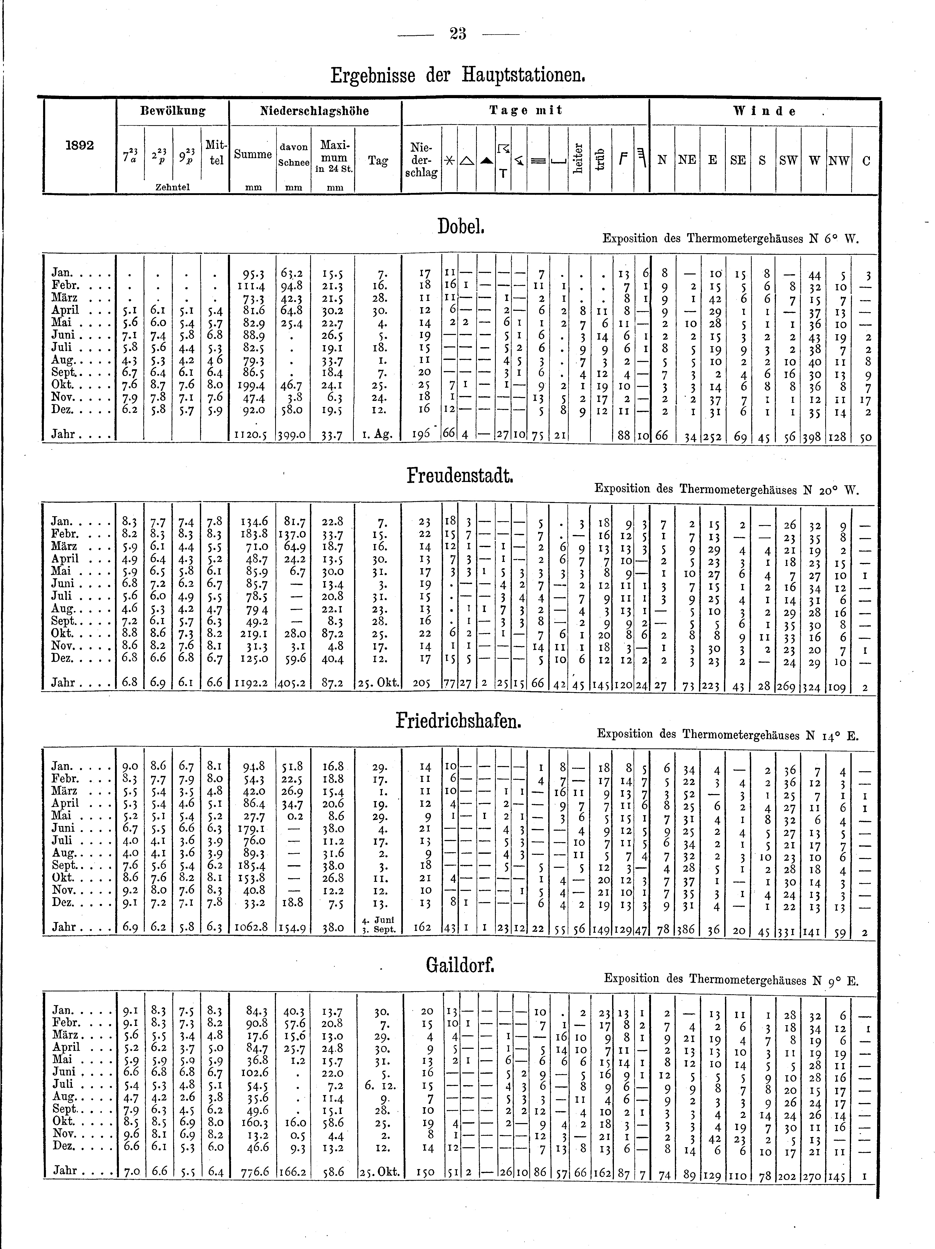 Ergebnisse der Regenstationen