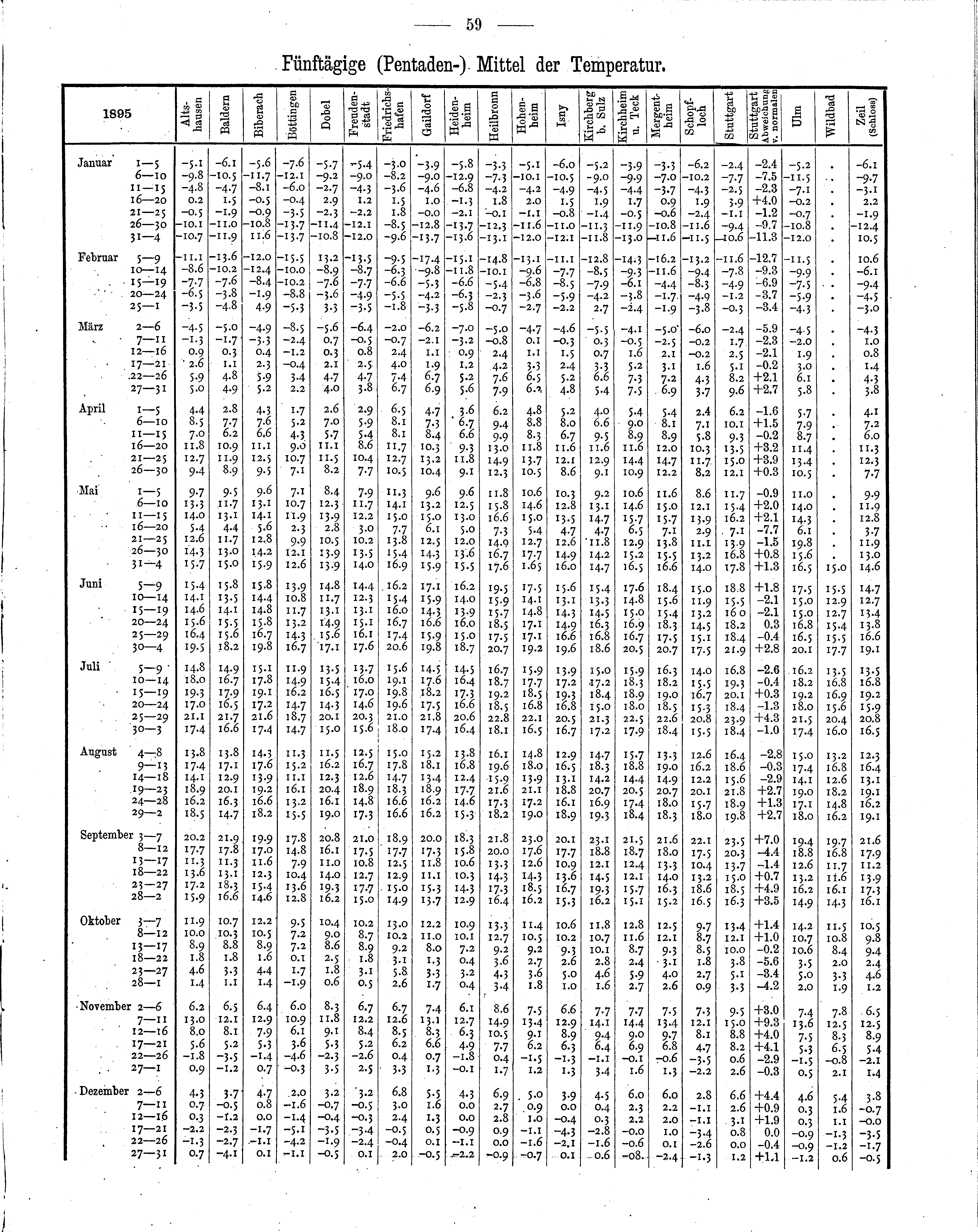 Fünftägige (Pentaden-) Mittel der Temperatur
