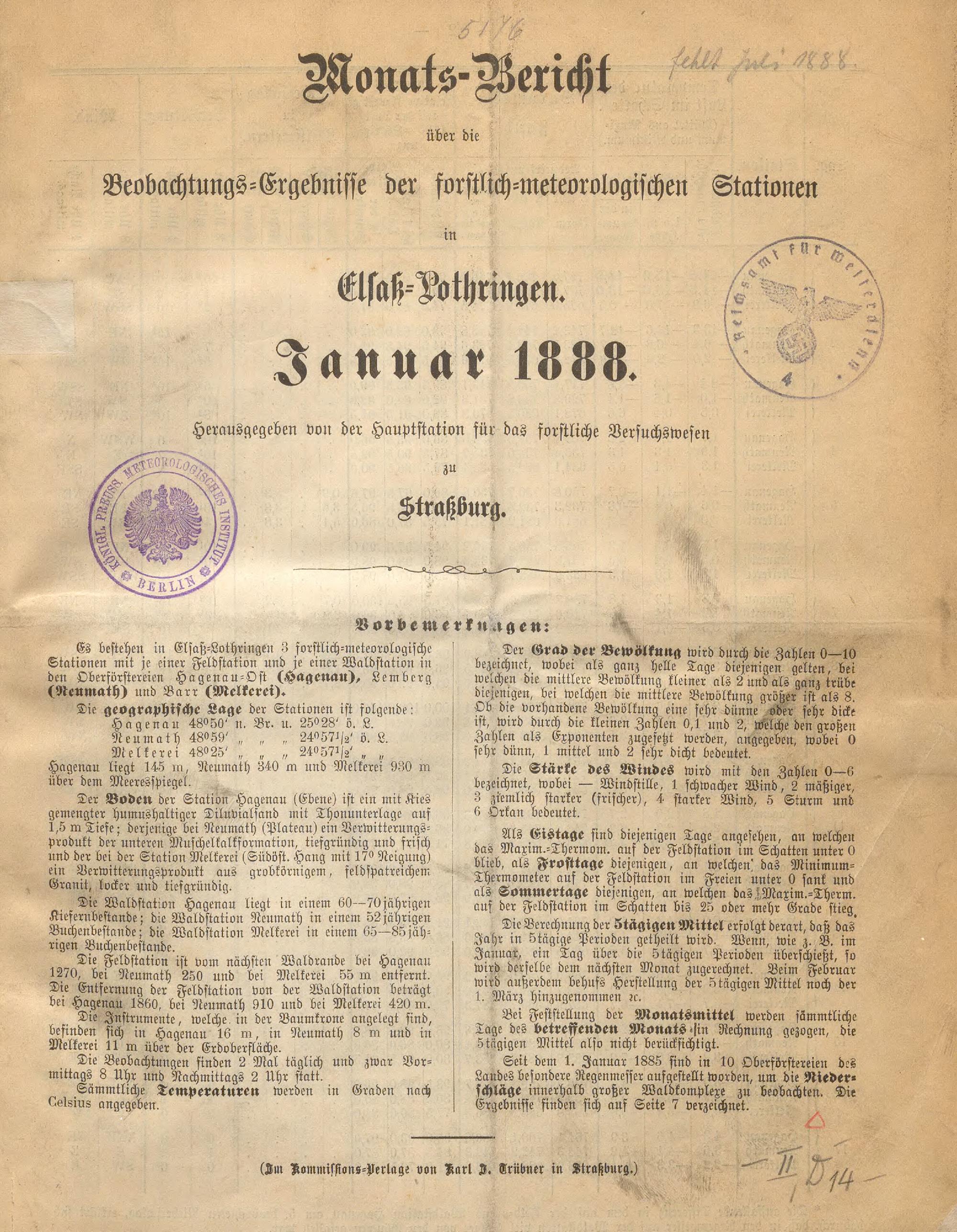 Monats-Bericht über die Beobachtungs-Ergebnisse der forstlich-meteorologischen Stationen...