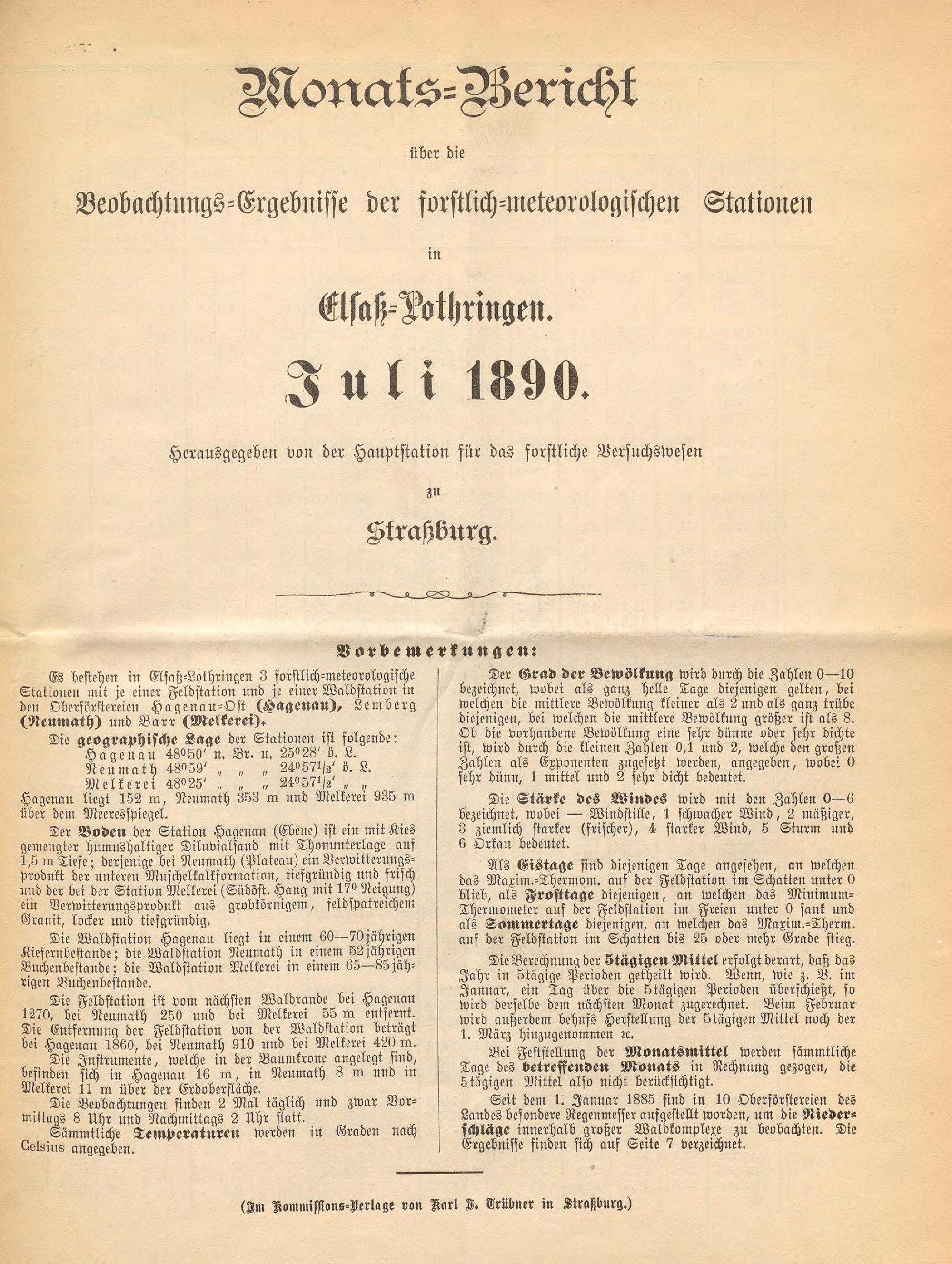 Monats-Bericht über die Beobachtungs-Ergebnisse der forstlich-meteorologischen Stationen...