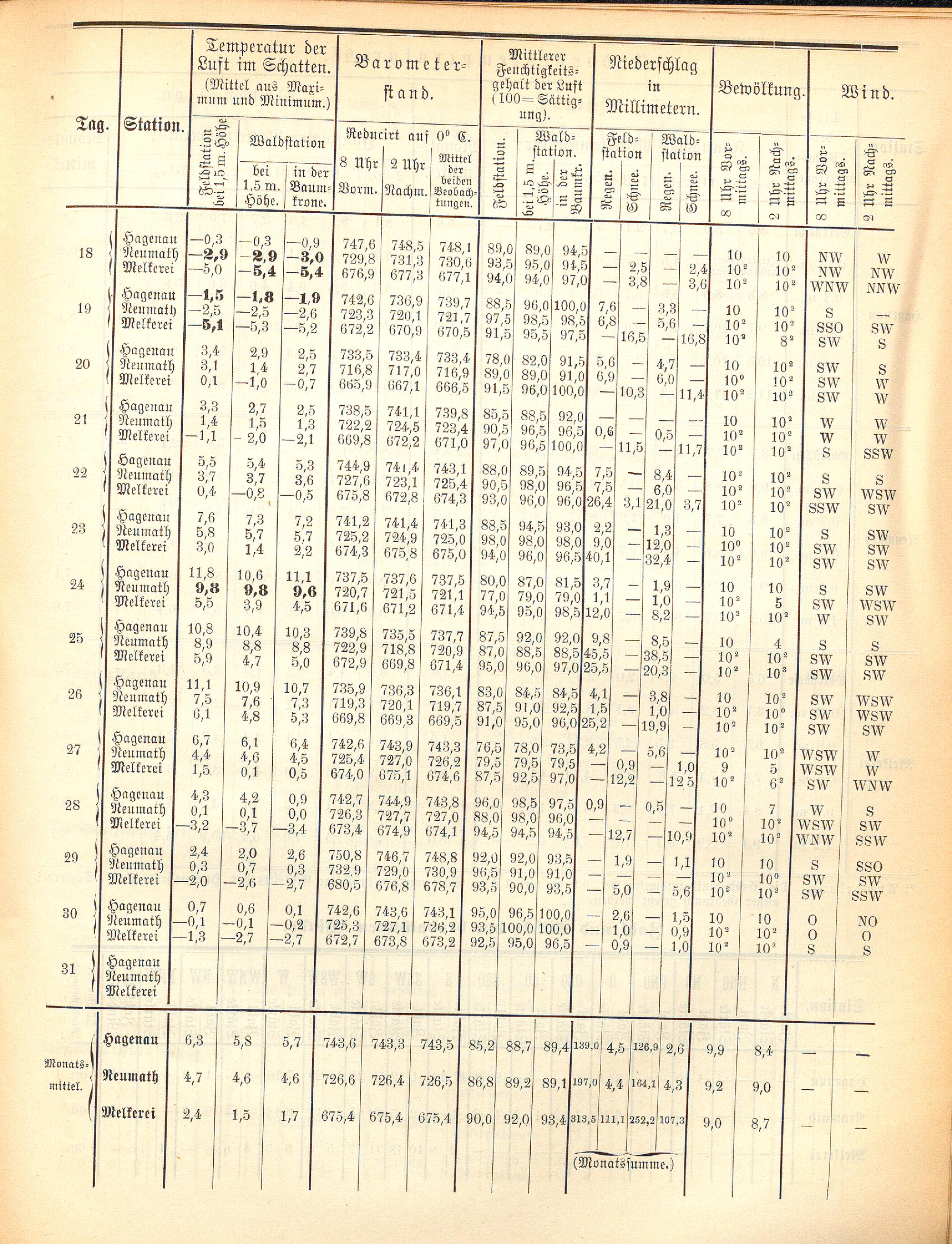 Monats-Bericht über die Beobachtungs-Ergebnisse der forstlich-meteorologischen Stationen...