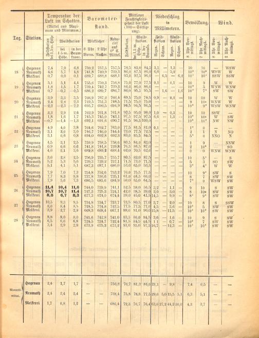 Monats-Bericht über die Beobachtungs-Ergebnisse der forstlich-meteorologischen Stationen...