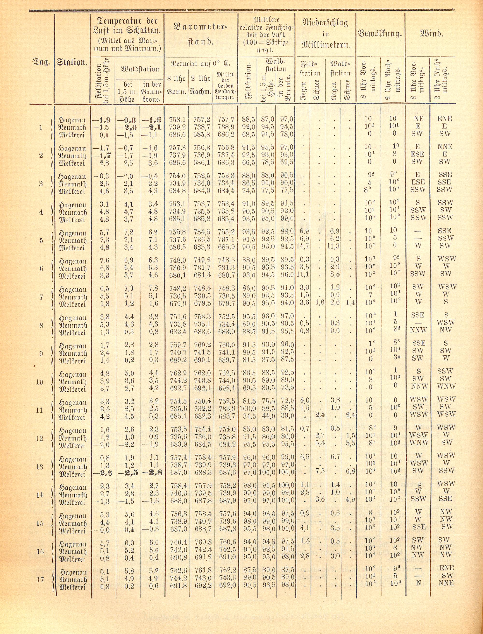 Monats-Bericht über die Beobachtungs-Ergebnisse der forstlich-meteorologischen Stationen...