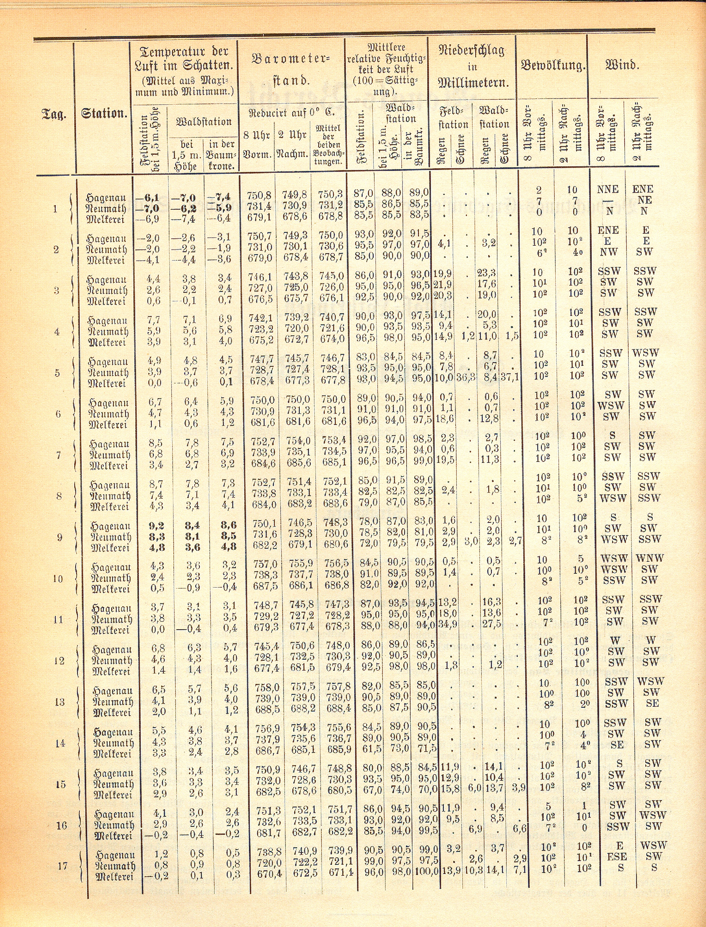 Monats-Bericht über die Beobachtungs-Ergebnisse der forstlich-meteorologischen Stationen...