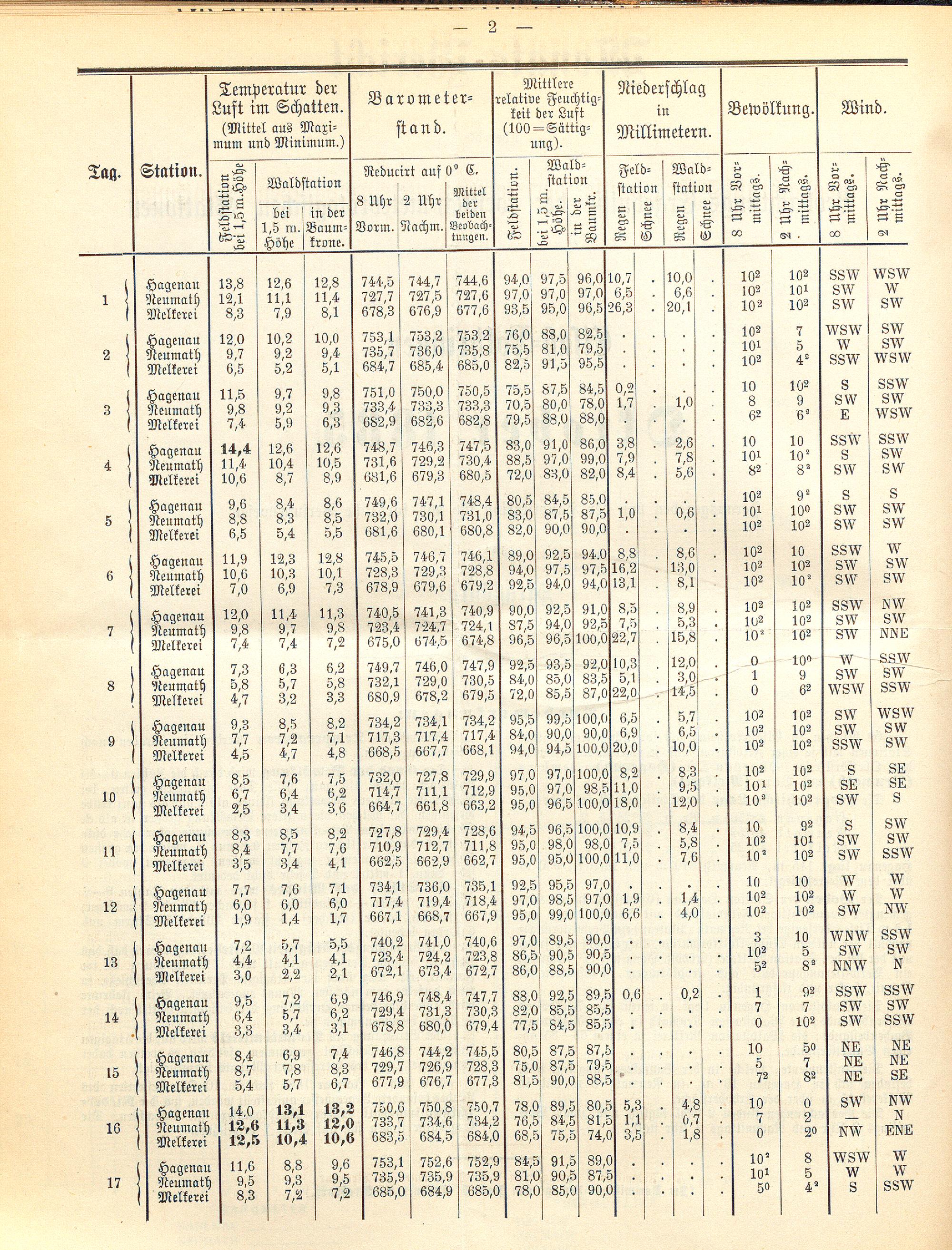 Monats-Bericht über die Beobachtungs-Ergebnisse der forstlich-meteorologischen Stationen...