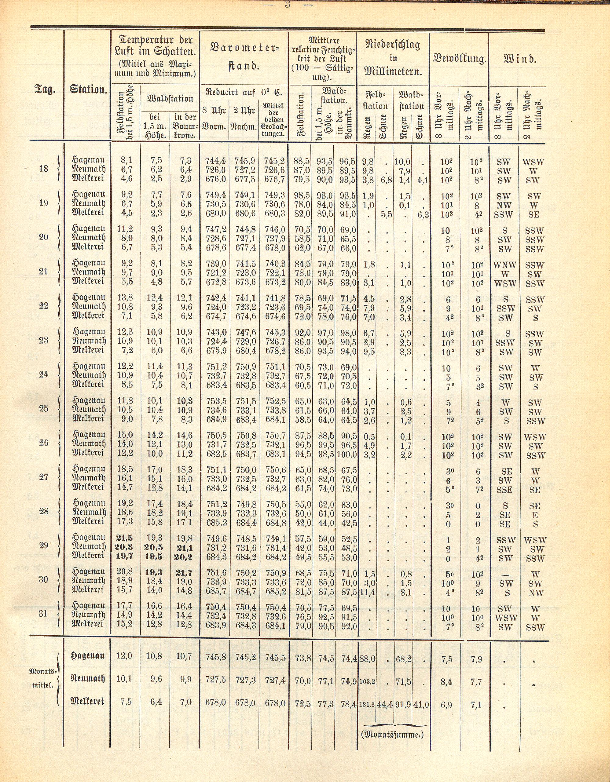 Monats-Bericht über die Beobachtungs-Ergebnisse der forstlich-meteorologischen Stationen...