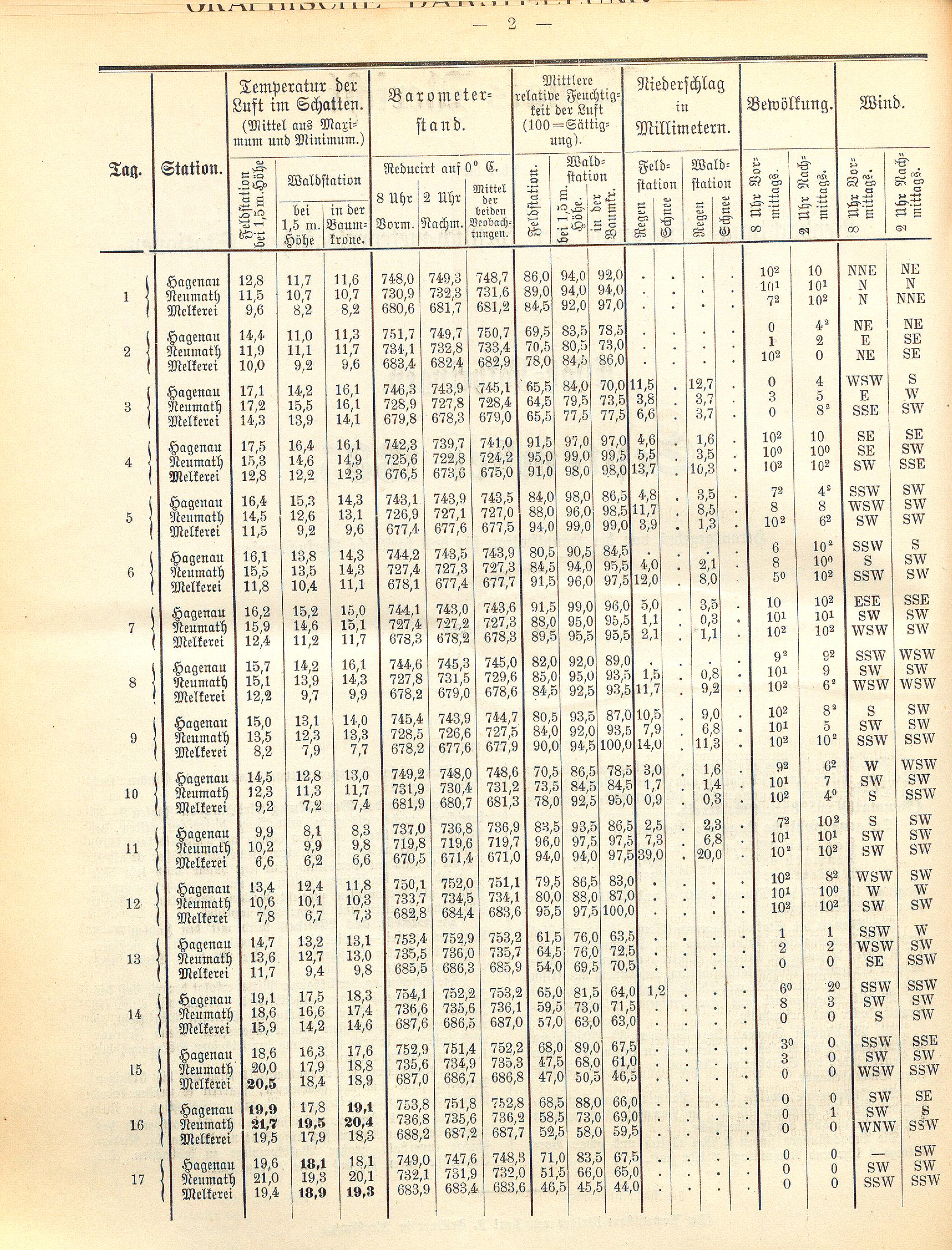 Monats-Bericht über die Beobachtungs-Ergebnisse der forstlich-meteorologischen Stationen...