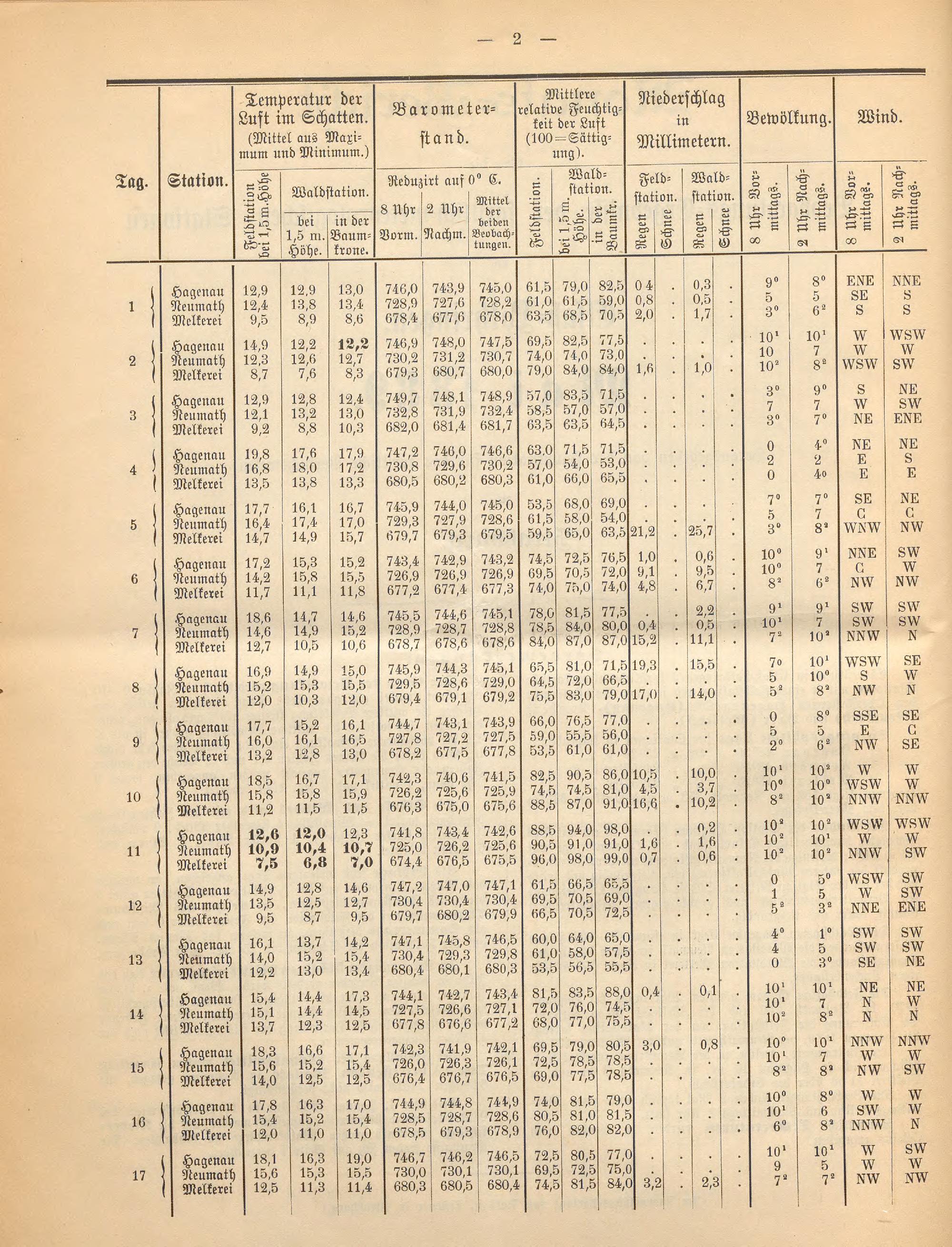 Monats-Bericht über die Beobachtungs-Ergebnisse der forstlich-meteorologischen Stationen...