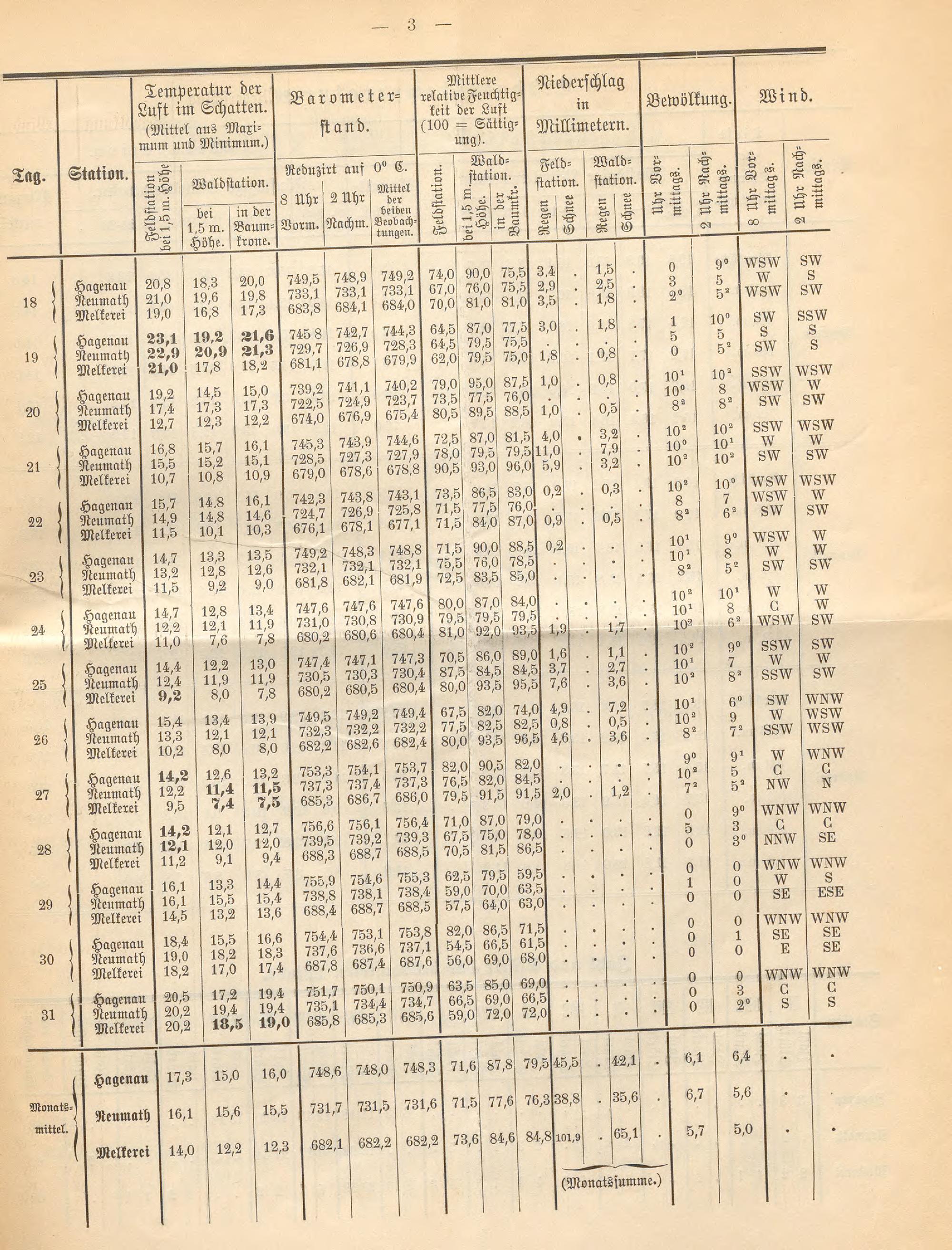 Monats-Bericht über die Beobachtungs-Ergebnisse der forstlich-meteorologischen Stationen...