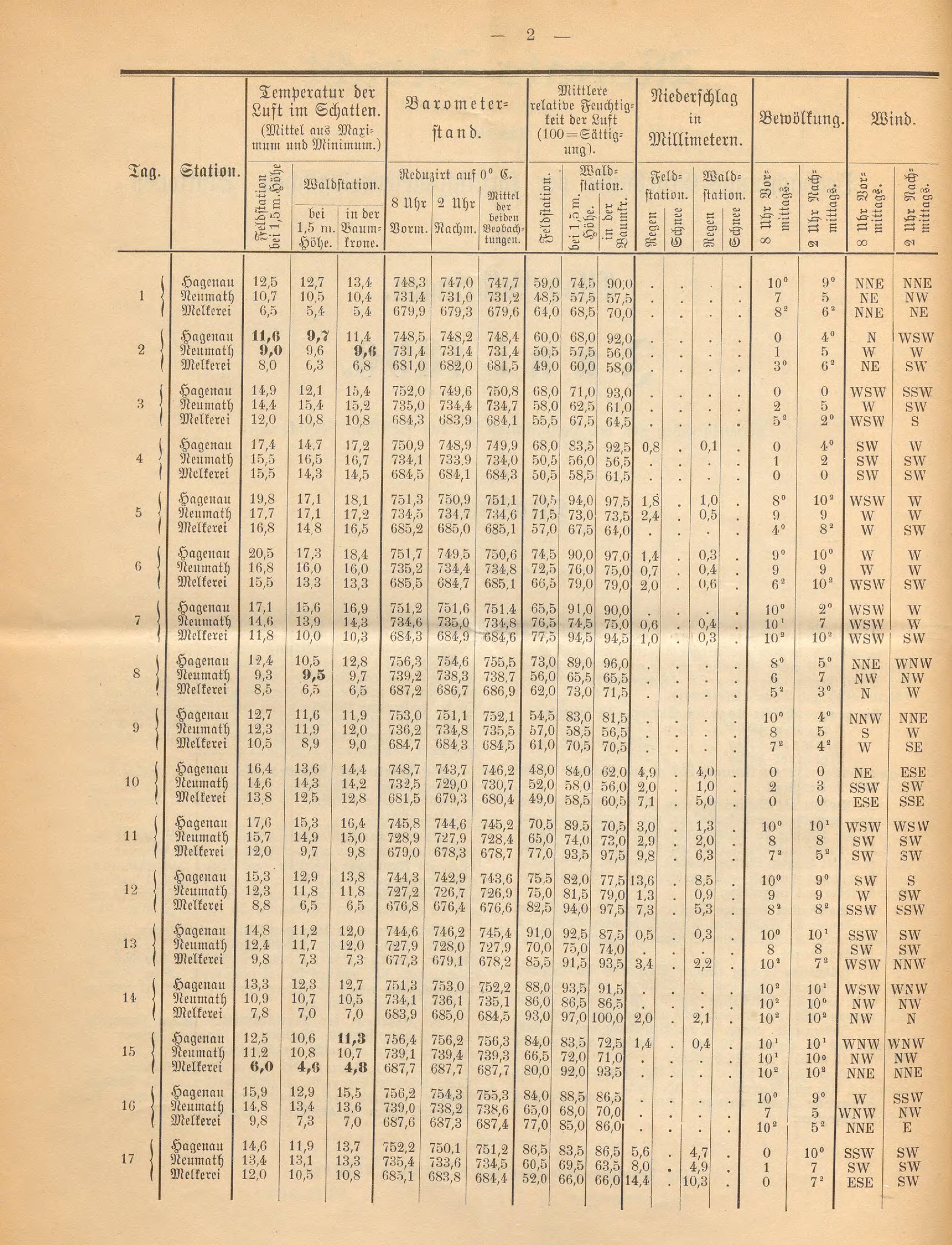 Monats-Bericht über die Beobachtungs-Ergebnisse der forstlich-meteorologischen Stationen...