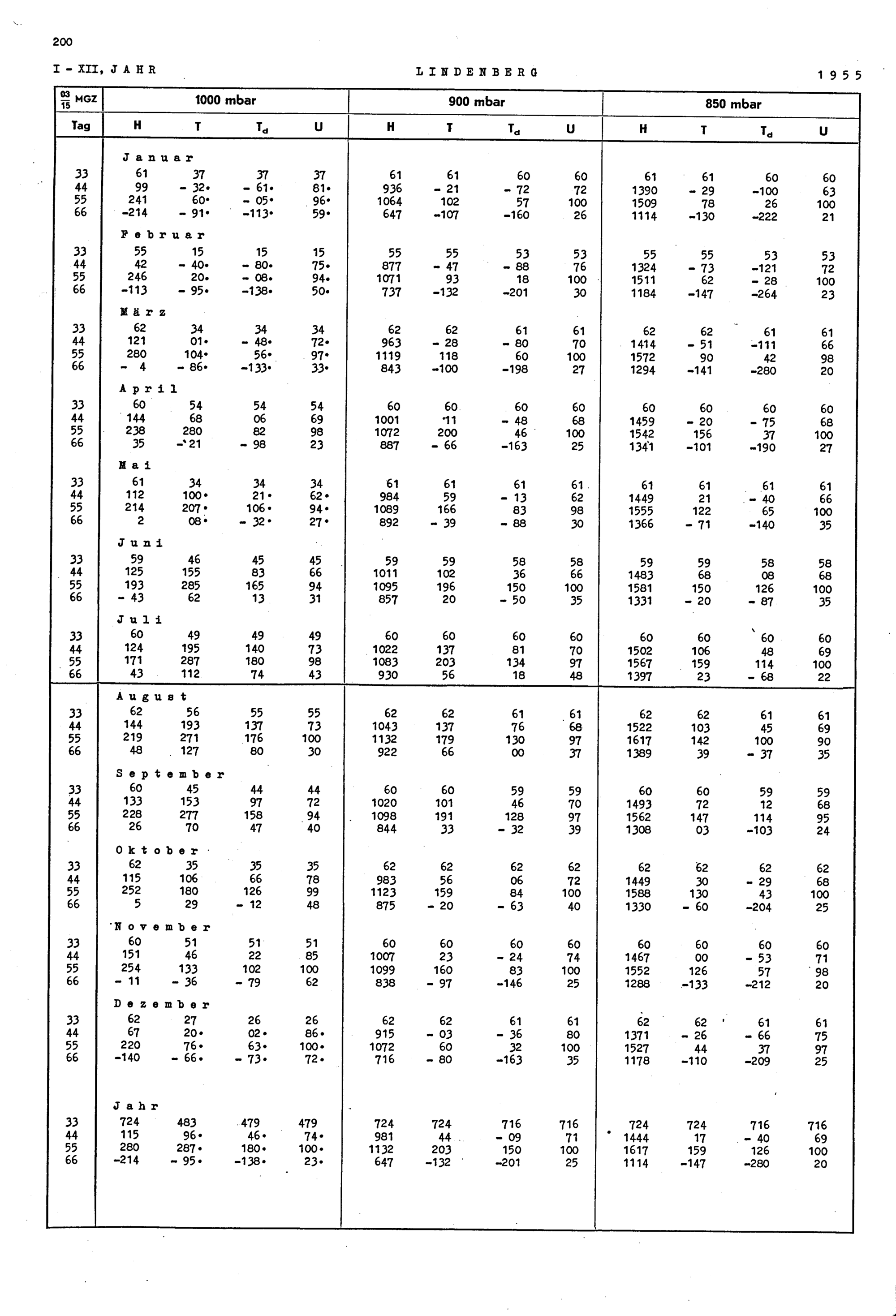 Monats- und Jahreswerte