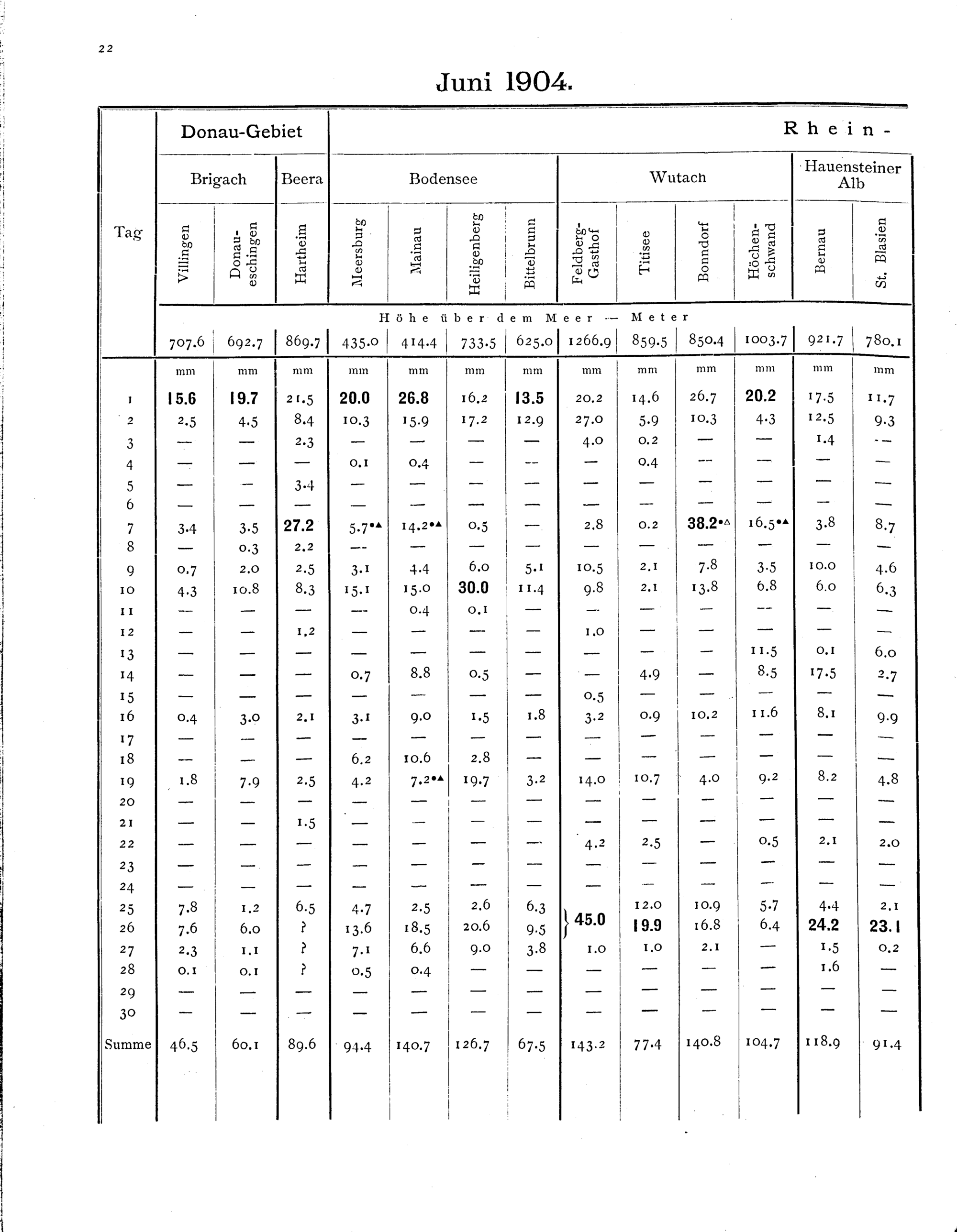 Niederschlagsbeobachtungen der meteorologischen Stationen in Baden