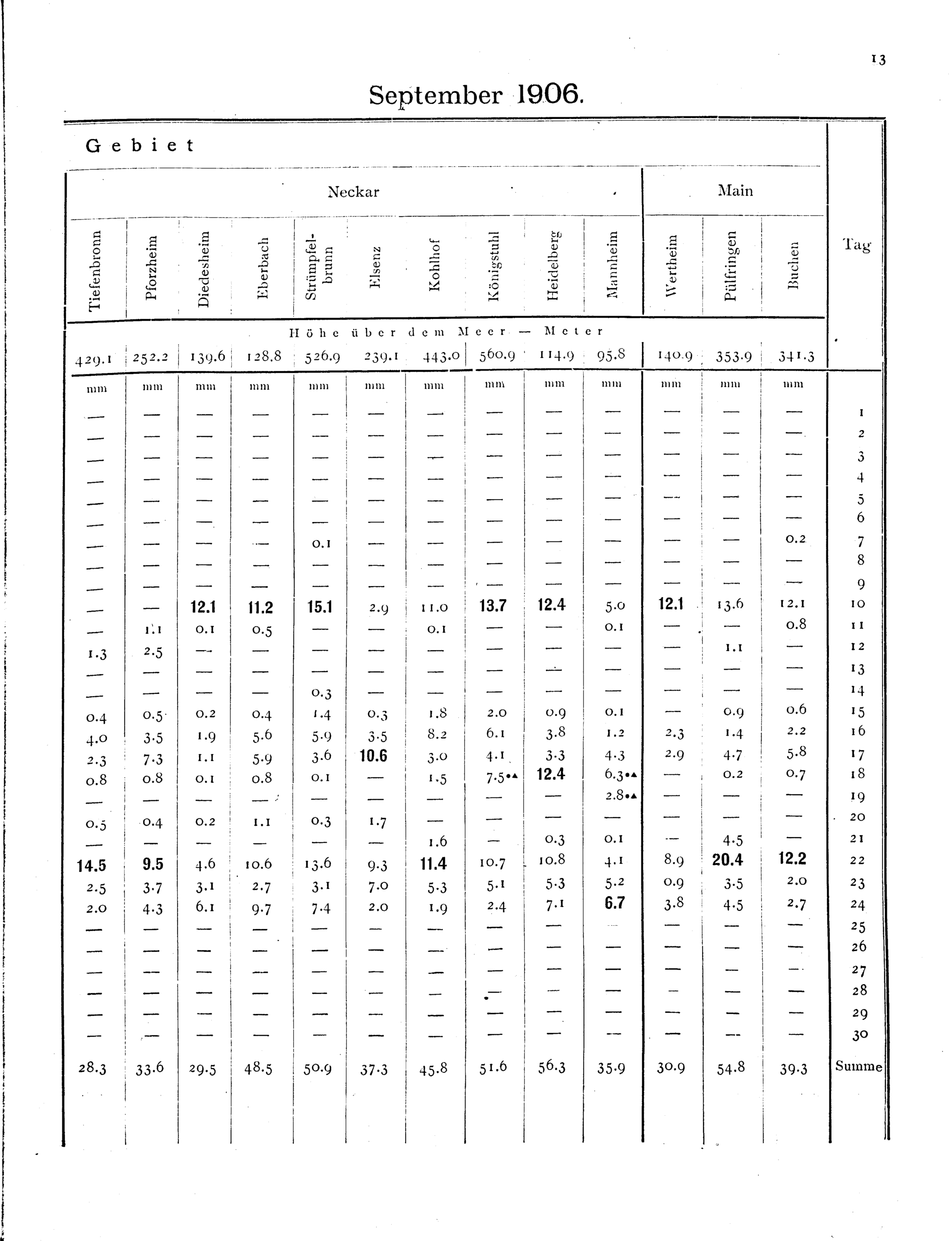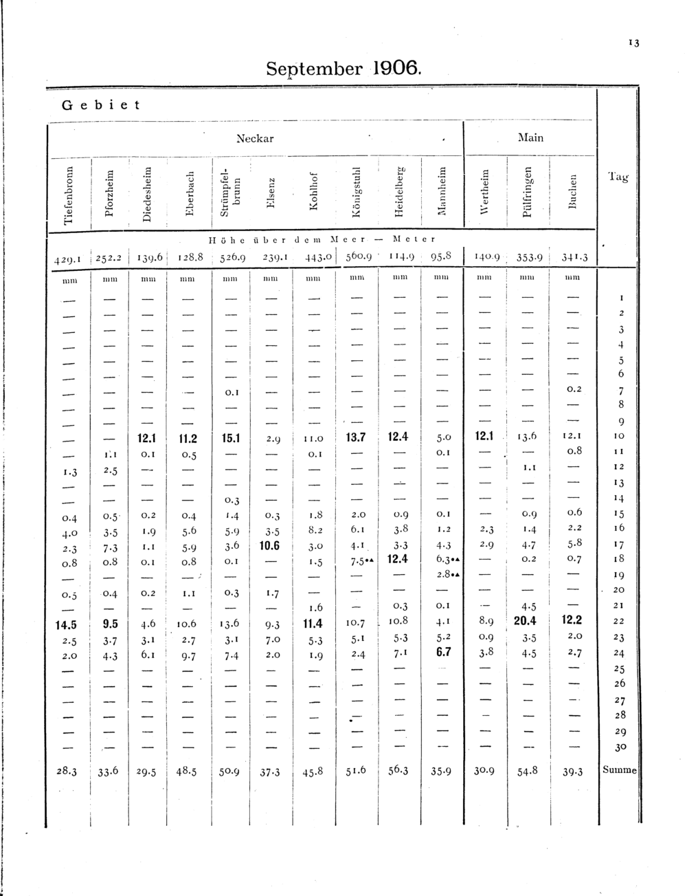 Niederschlagsbeobachtungen der meteorologischen Stationen in Baden