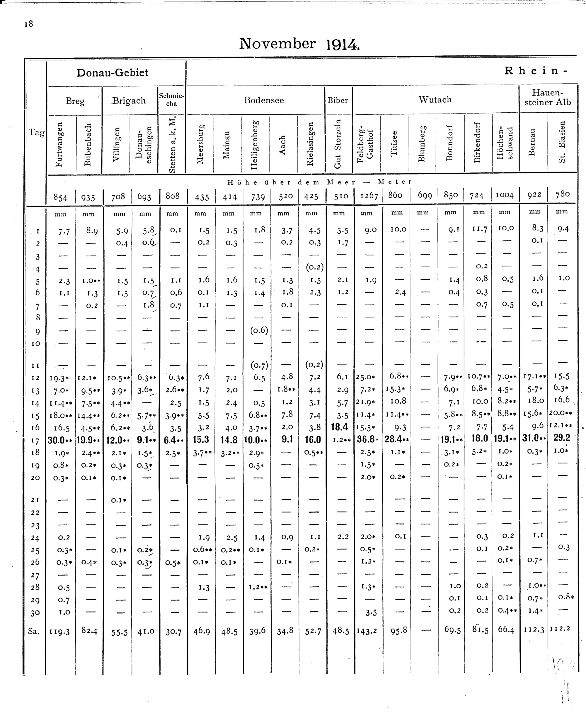 Niederschlagsbeobachtungen der meteorologischen Stationen in Baden