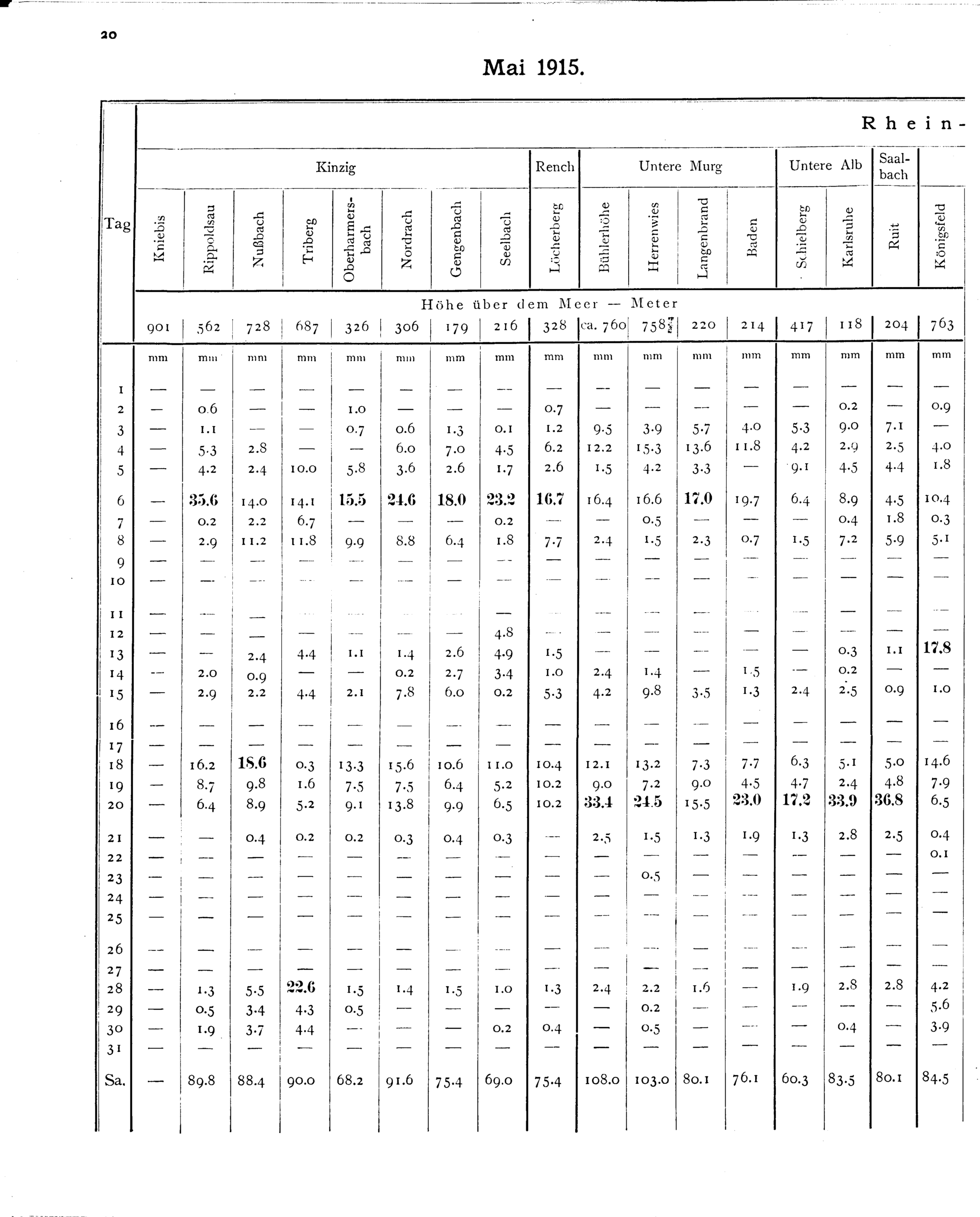 Niederschlagsbeobachtungen der meteorologischen Stationen in Baden