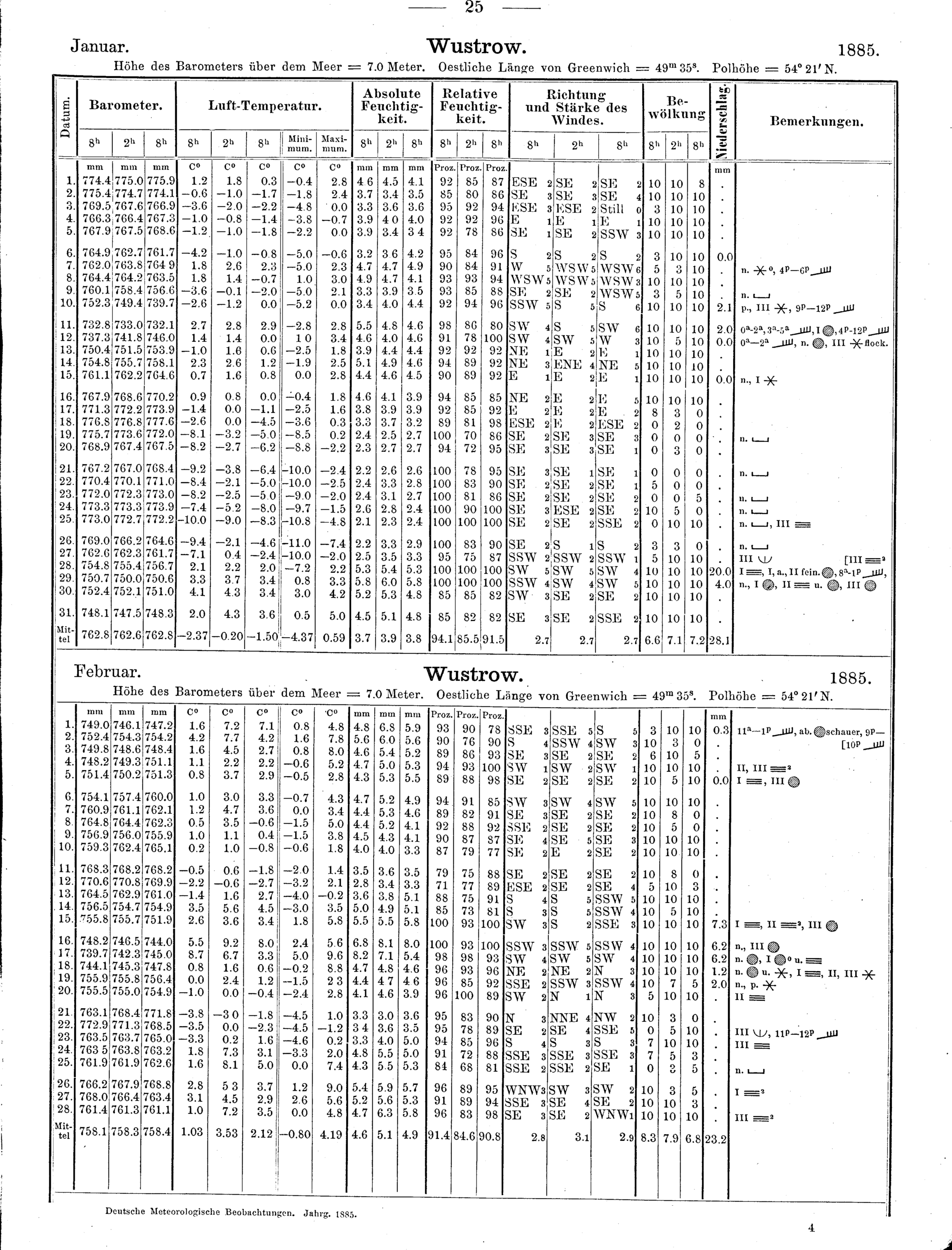 I. Theil: Meteorologische Beboachtungen in Deutschland, angestellt an 25 Stationen...