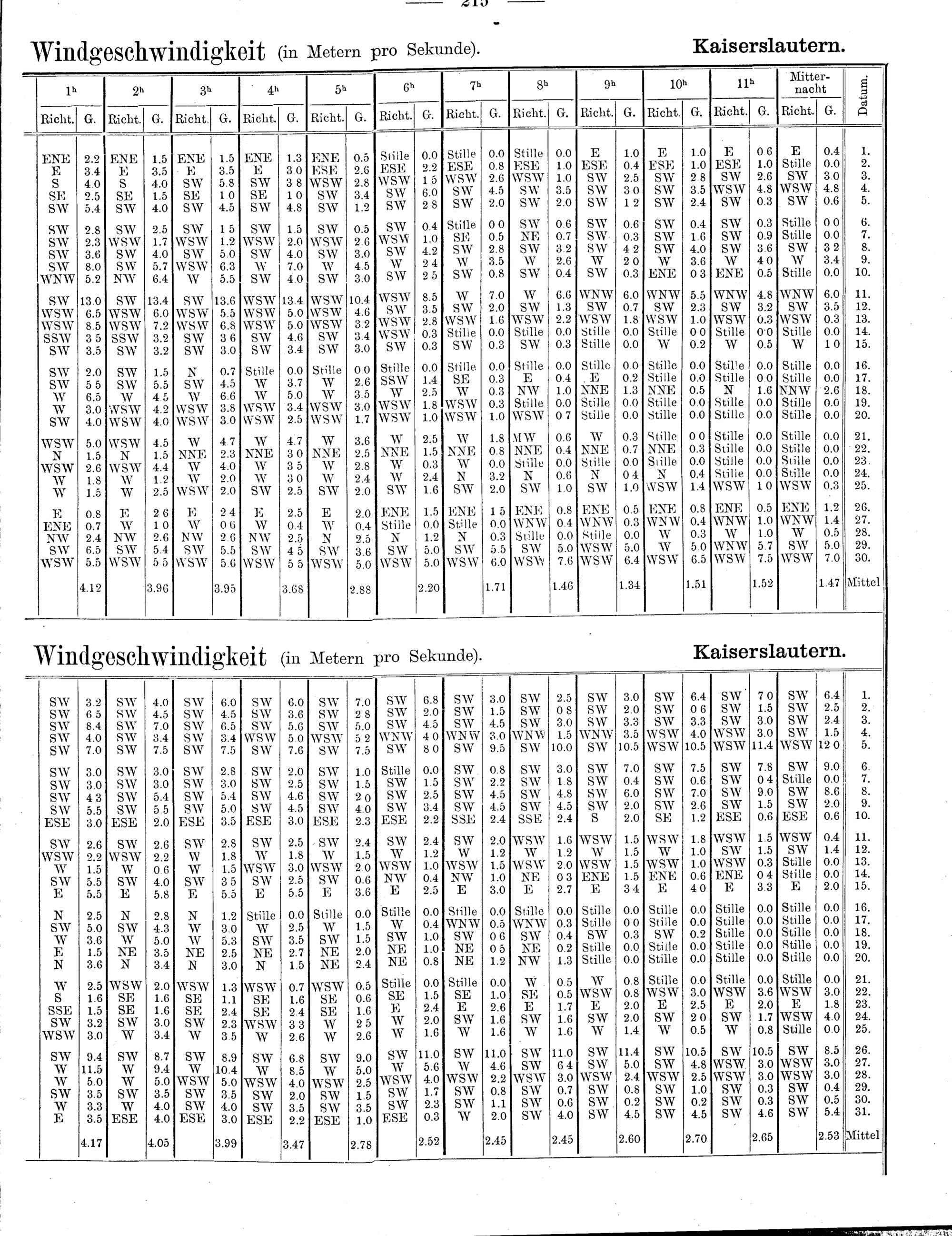 II. Theil: Stündliche Aufzeichnungen der autographischen Apparate für Luftdruck, Temperatur, Windrichtung und Windgeschwindigkeit an den drei Normal-Beobachtungsstationen der Deutschen Seewarte (sowie in Kaiserslautern)