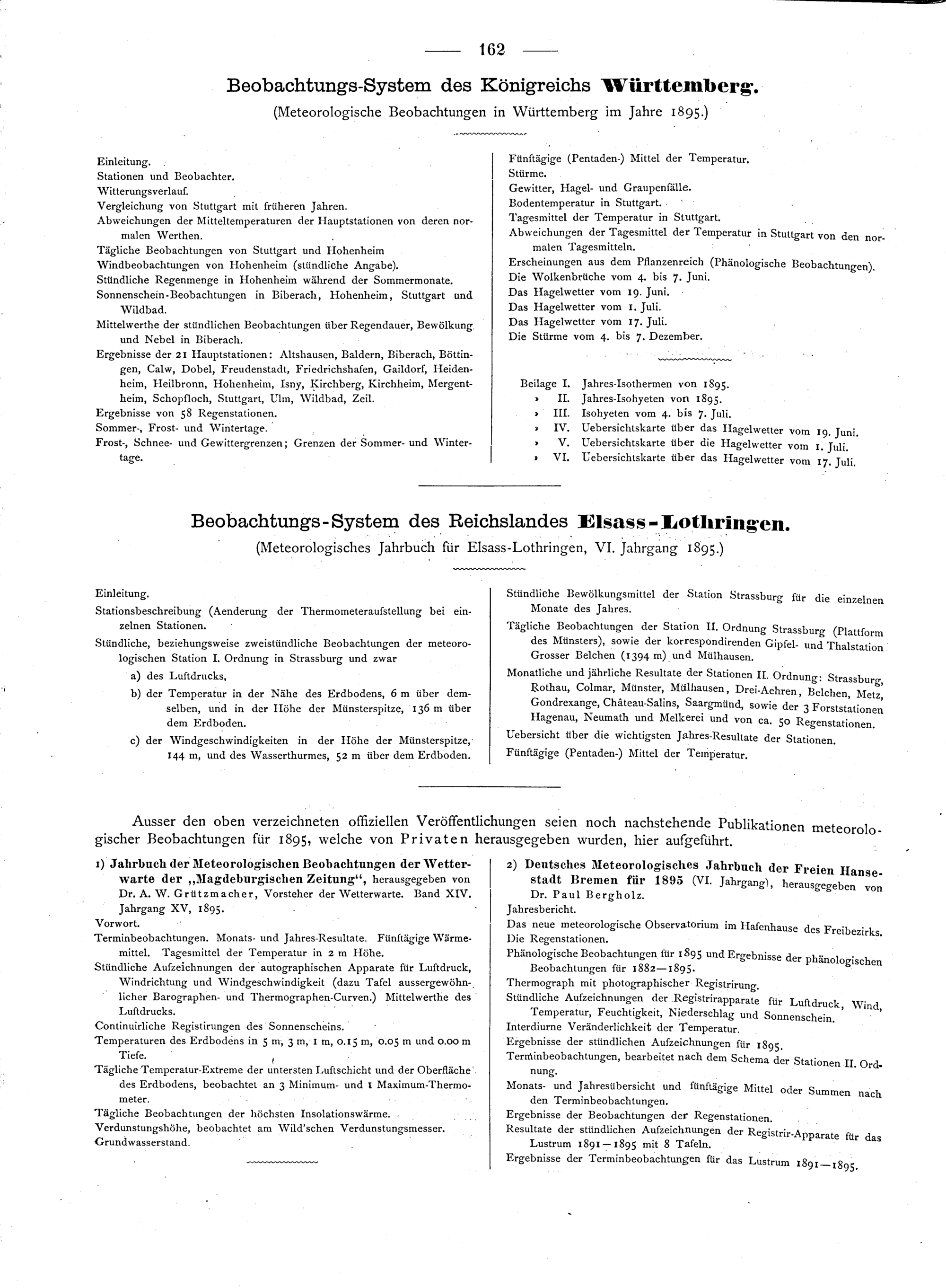 Anhang: Gesammtinhalt des Deutschen Meteorologischen Jahrbuchs für 1895