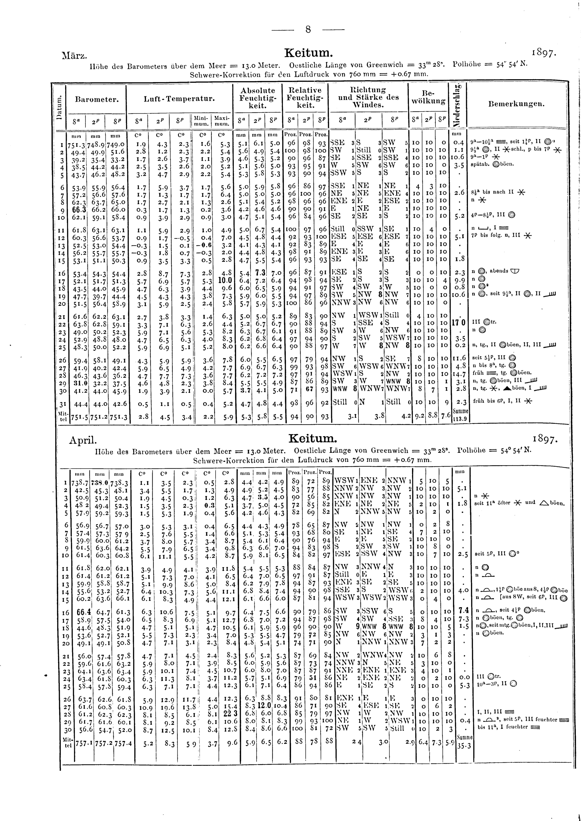 Ergebnisse der meteorologischen Beobachtungen