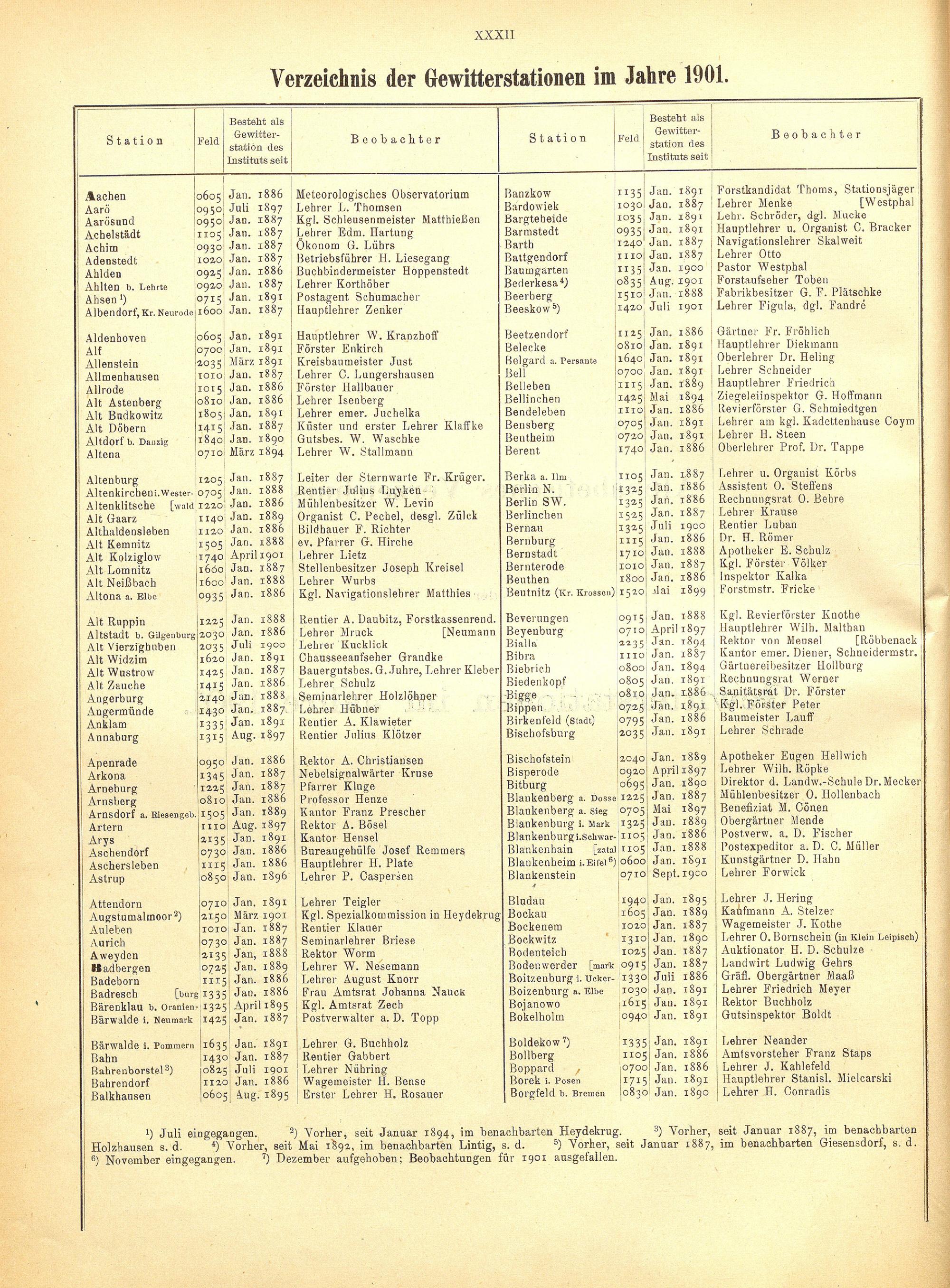 Alphabetisches Verzeichnis der Gewitterstationen im Jahre 1901