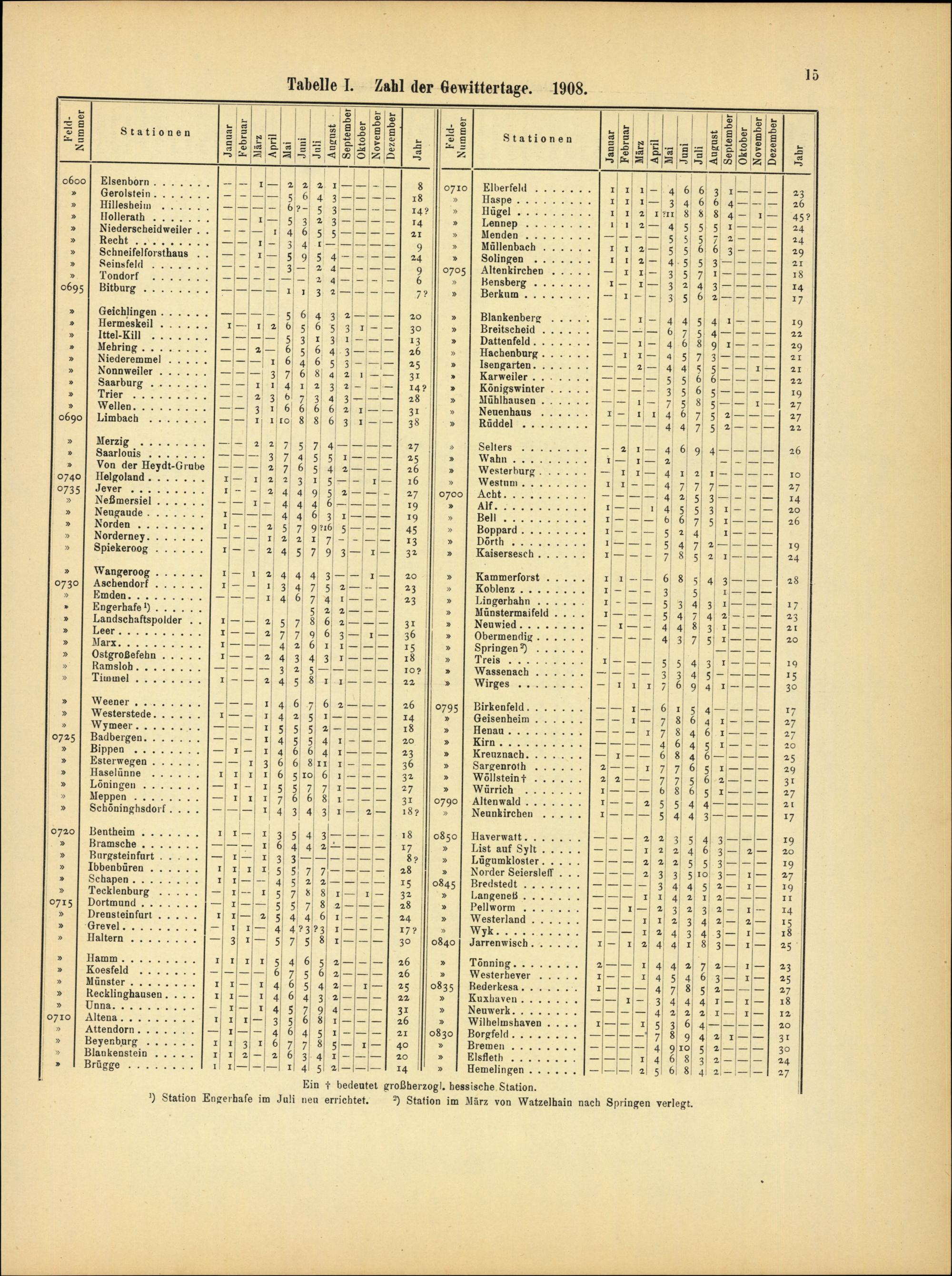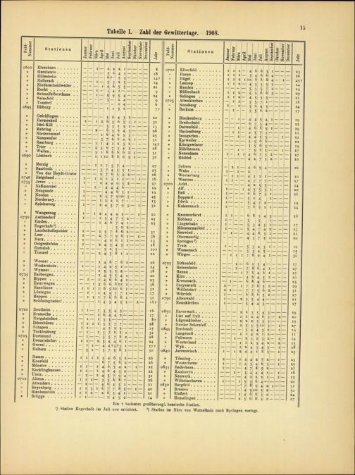 Alphabetisches Verzeichnis der Gewitterstationen im Jahre 1908
