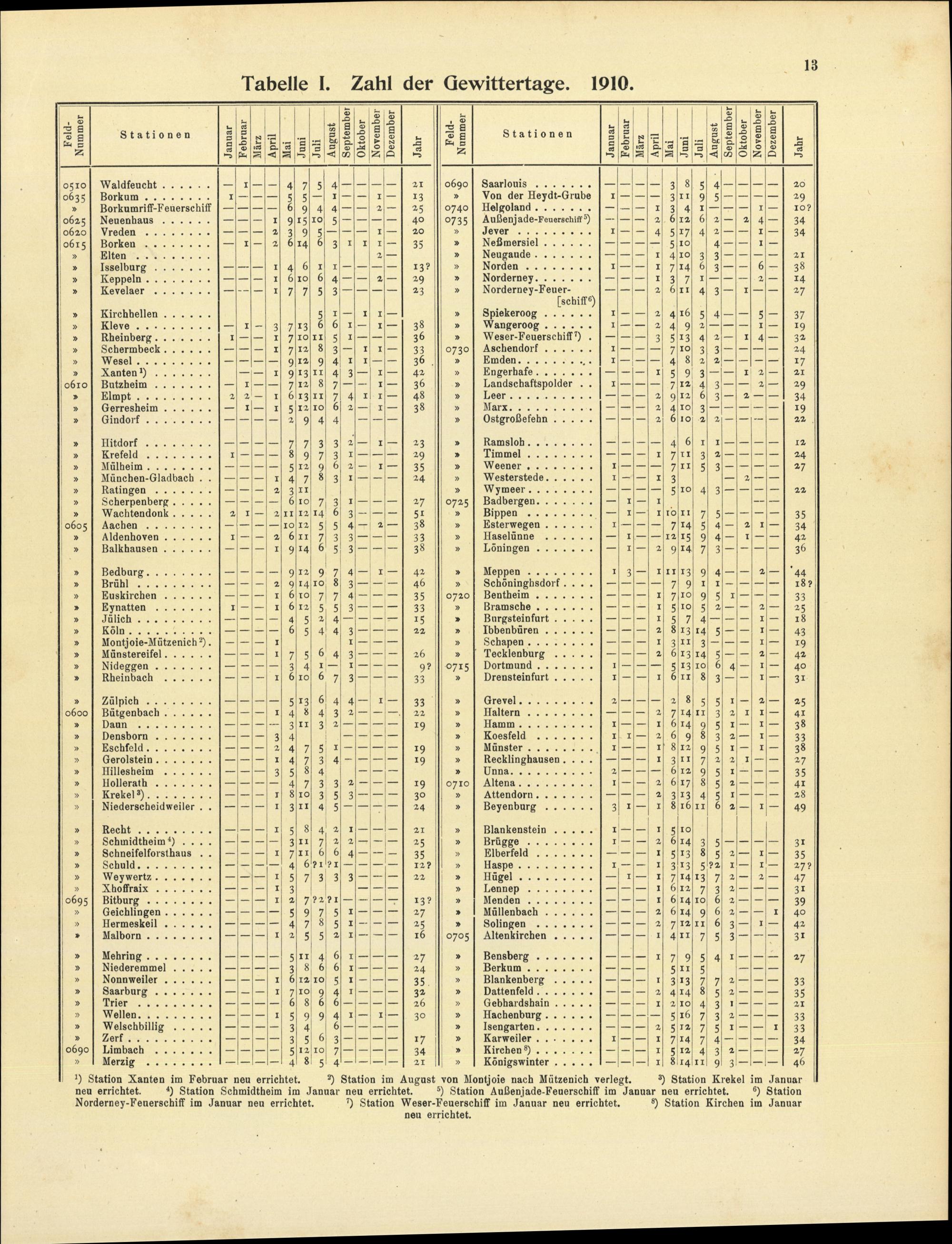 Tabelle I: Zahl der Gewittertage