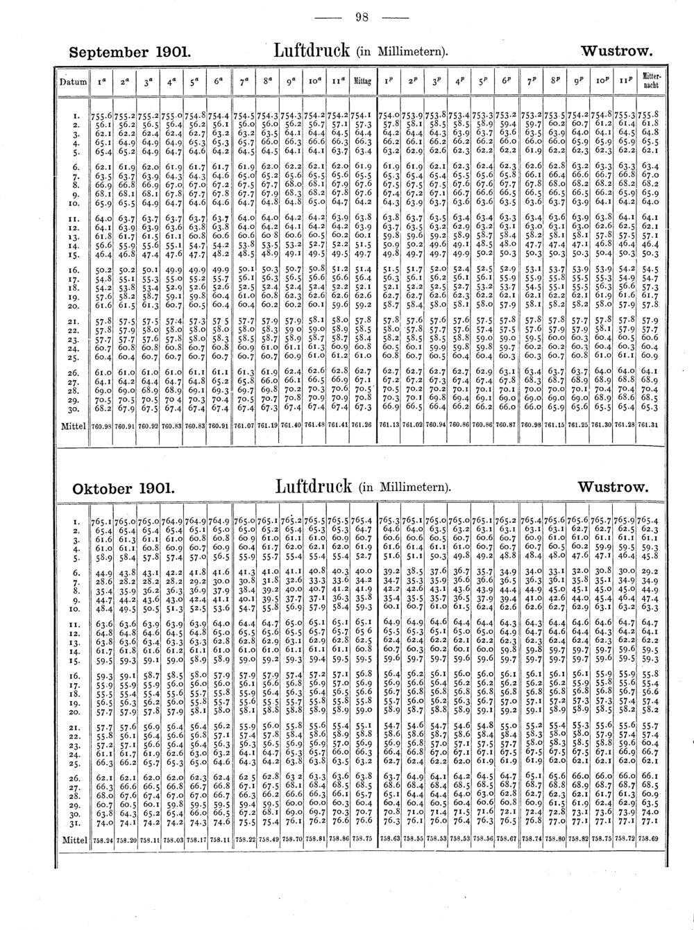 II. Theil: Stündliche Aufzeichnungen der autographischen Apparate für Luftdruck,...