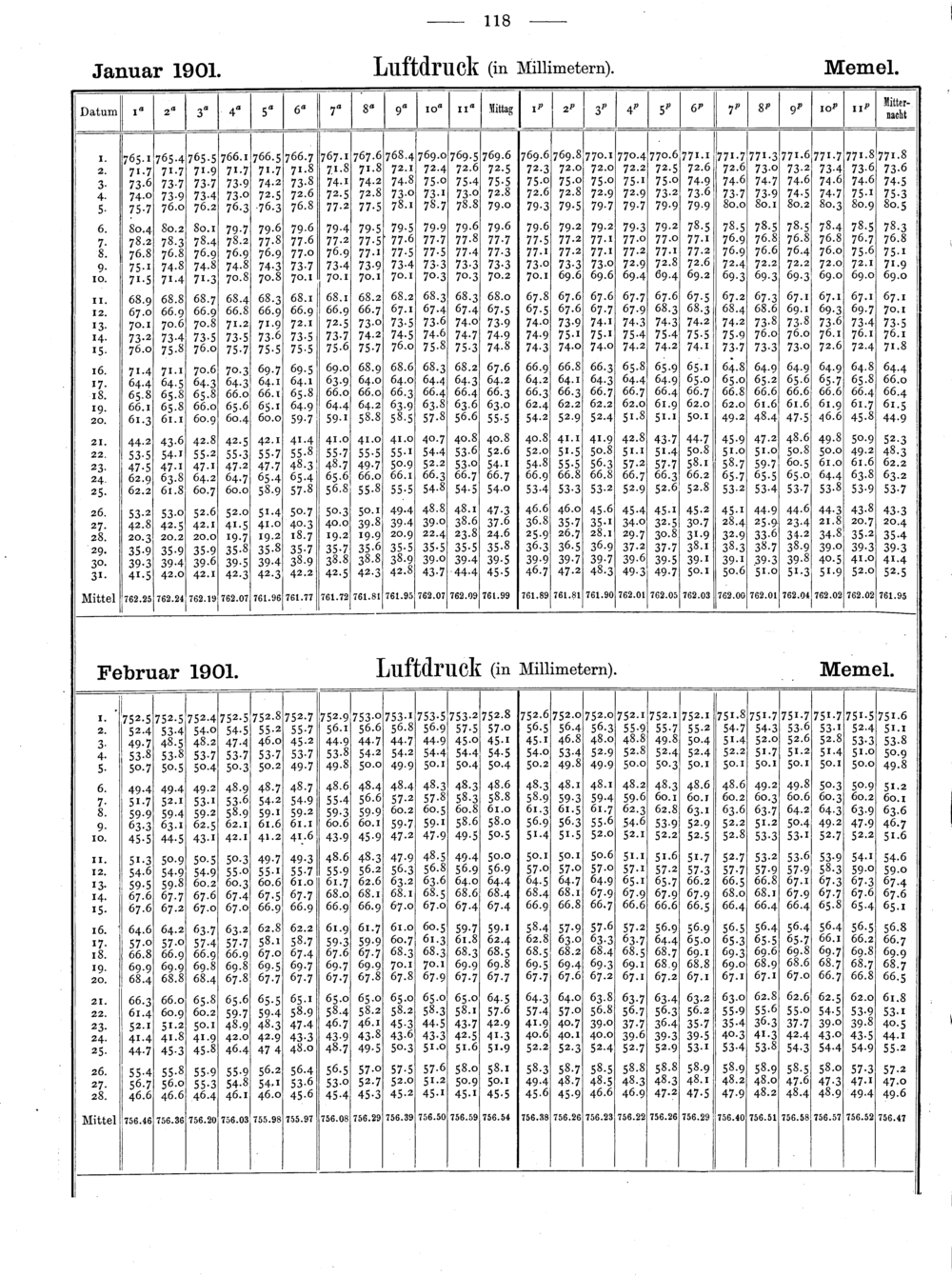 II. Theil: Stündliche Aufzeichnungen der autographischen Apparate für Luftdruck,...