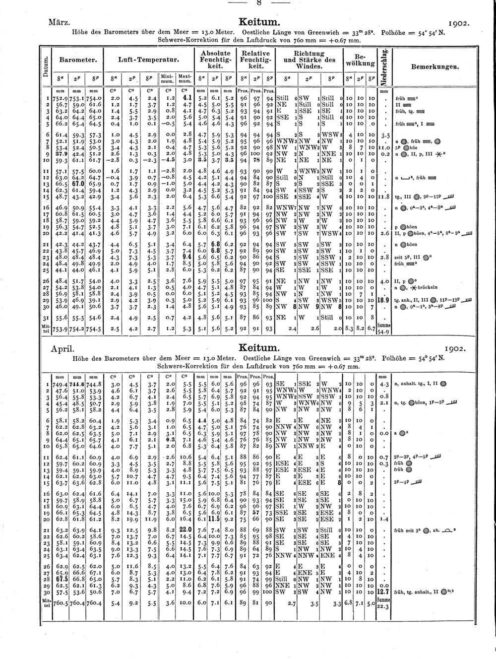 I. Theil: Meteorologische Beobachtungen in Deutschland, angestellt an 9 Stationen...