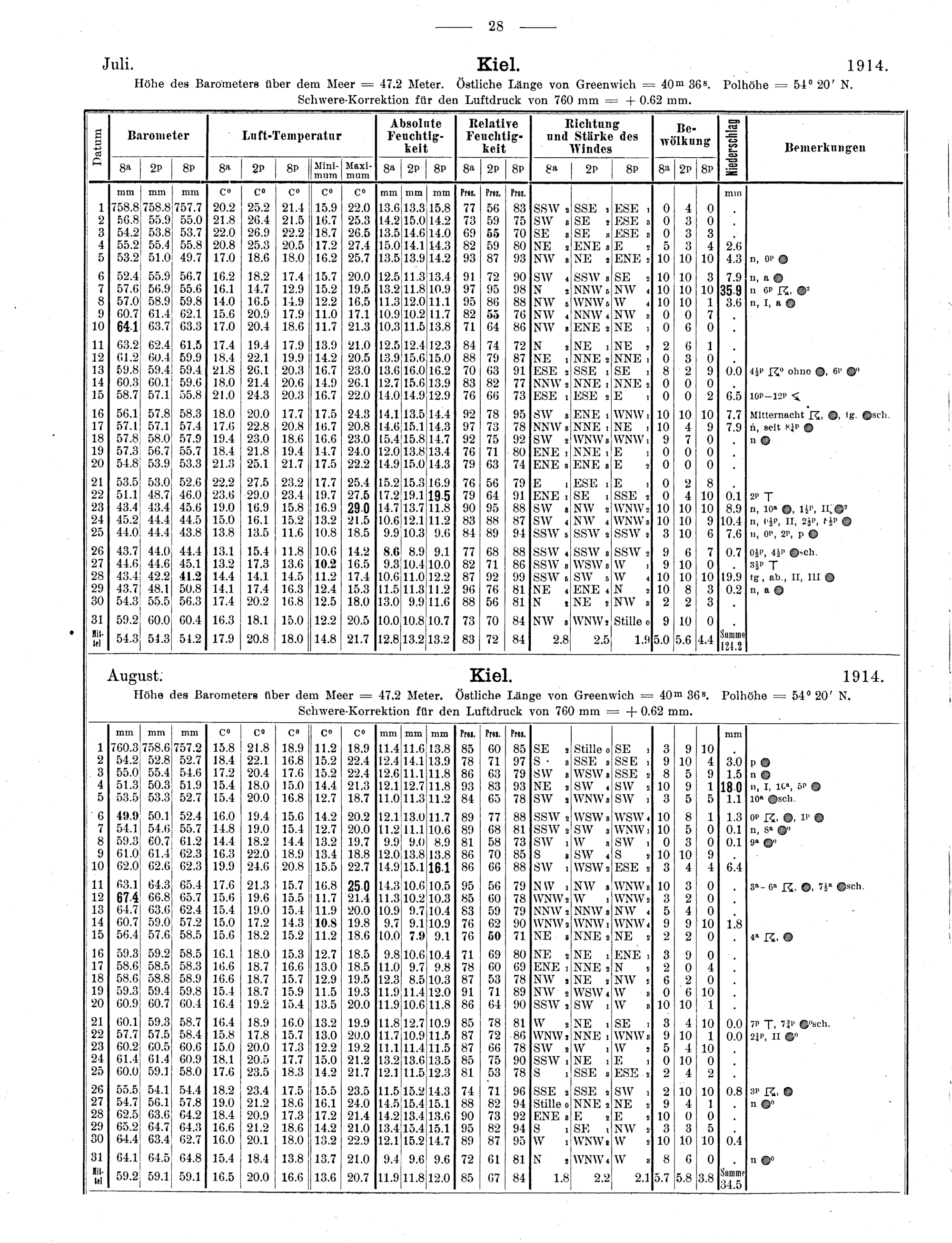 I. Teil: Meteorologische Beobachtungen in Deutschland, angestellt an 9 Stationen...