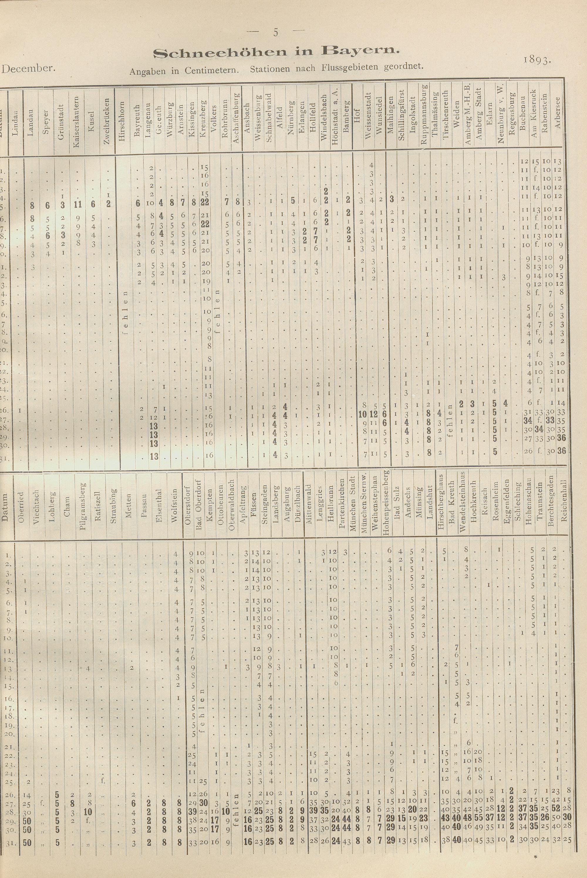 Die Schneedecke in Bayern im Winter 1893/94 - Übersichtstabelle