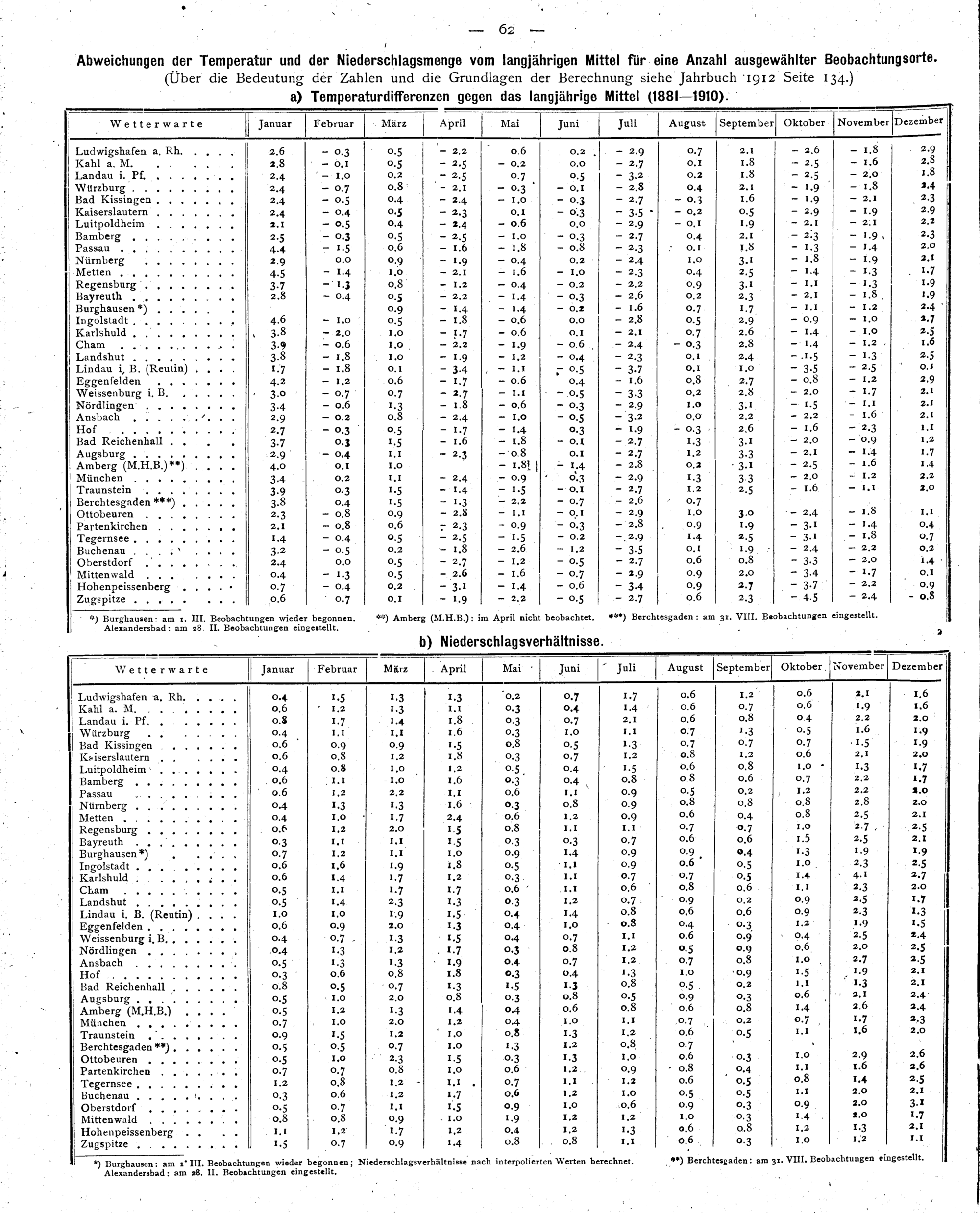 Abweichungen der Temperatur und der Niederschlagsmenge vom langjährigen Mittel für...