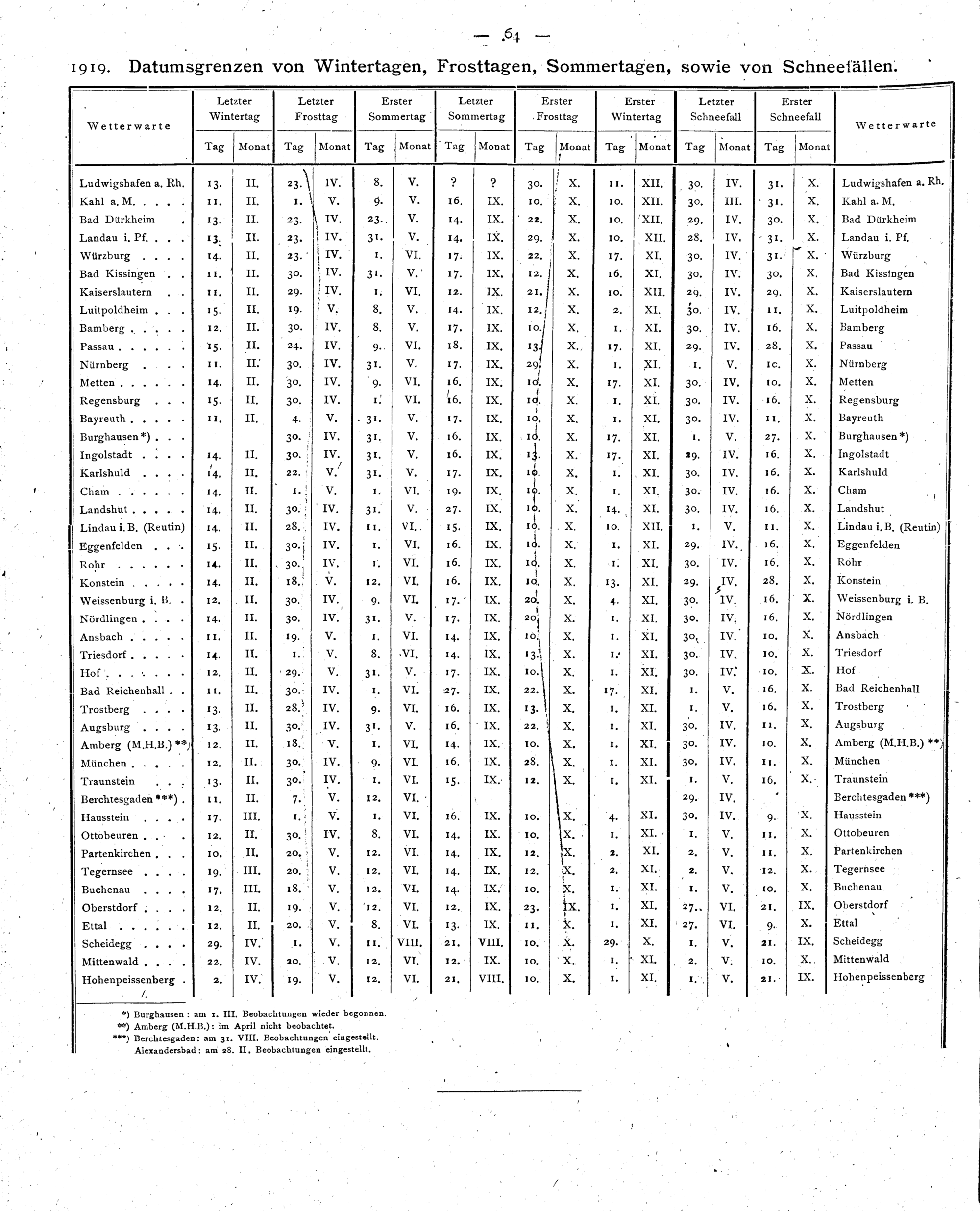 Datumsgrenzen von Wintertagen, Frosttagen, Sommertagen, sowie von Schneefällen
