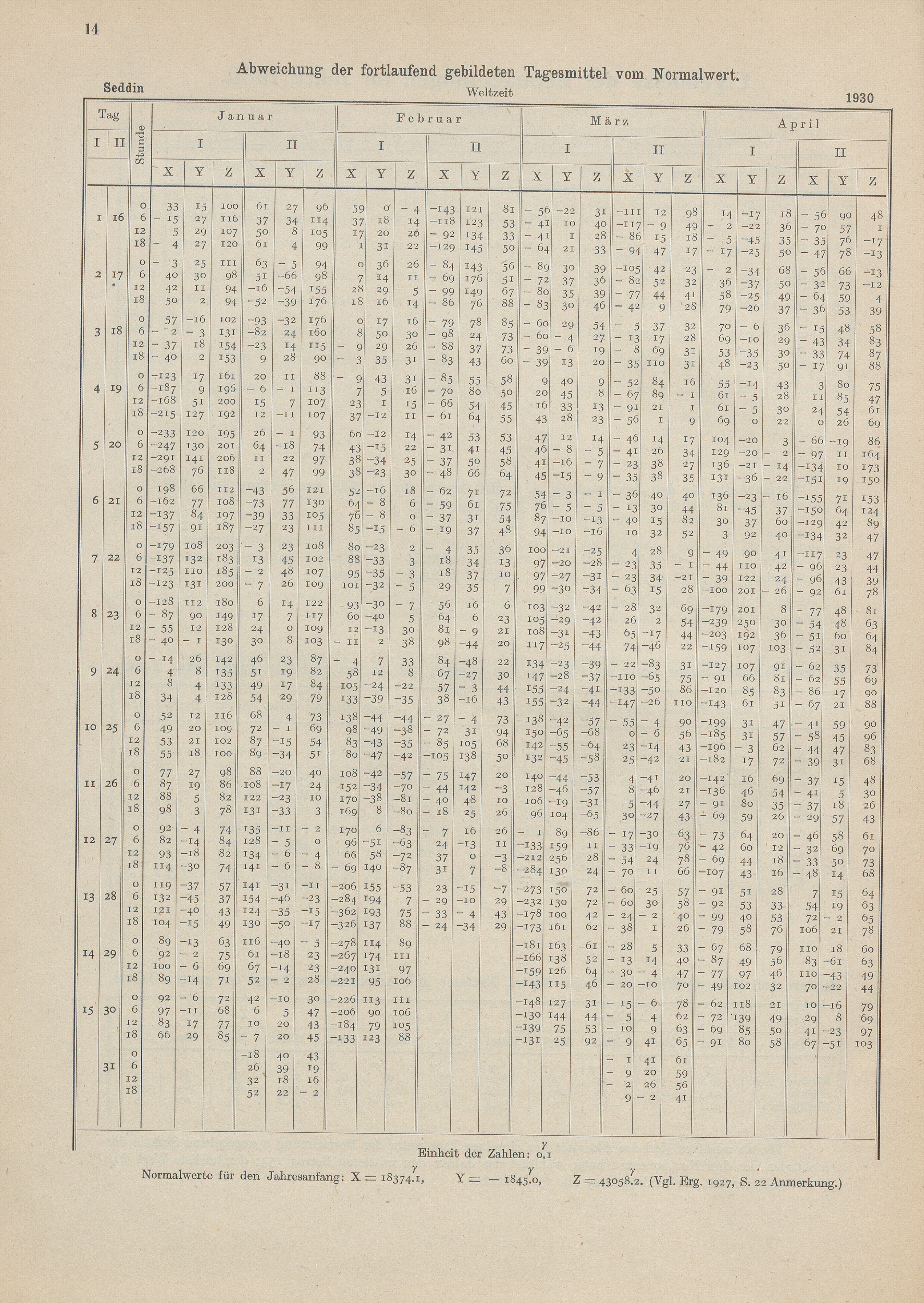Ergebnisse der Beobachtungen im Jahre 1930