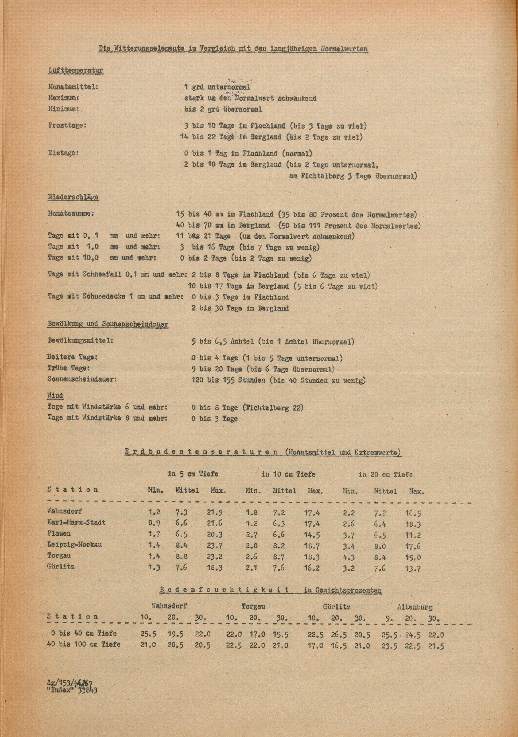 Witterungsübersicht für die Bezirke Dresden, Karl-Marx-Stadt, Leipzig