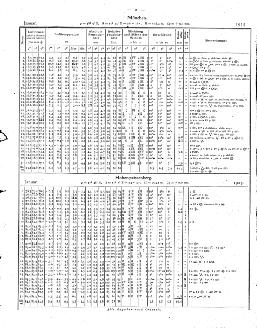 Tägliche Beobachtungen der Stationen II. Ordnung