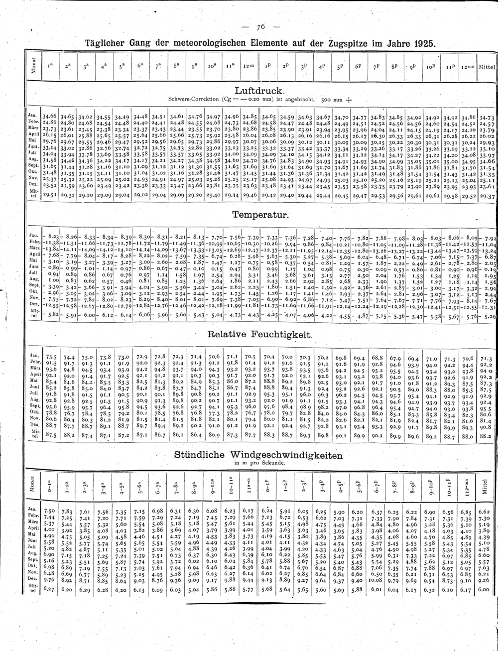 Täglicher Gang der meteorologischen Elemente auf der Zugspitze im Jahre 1925