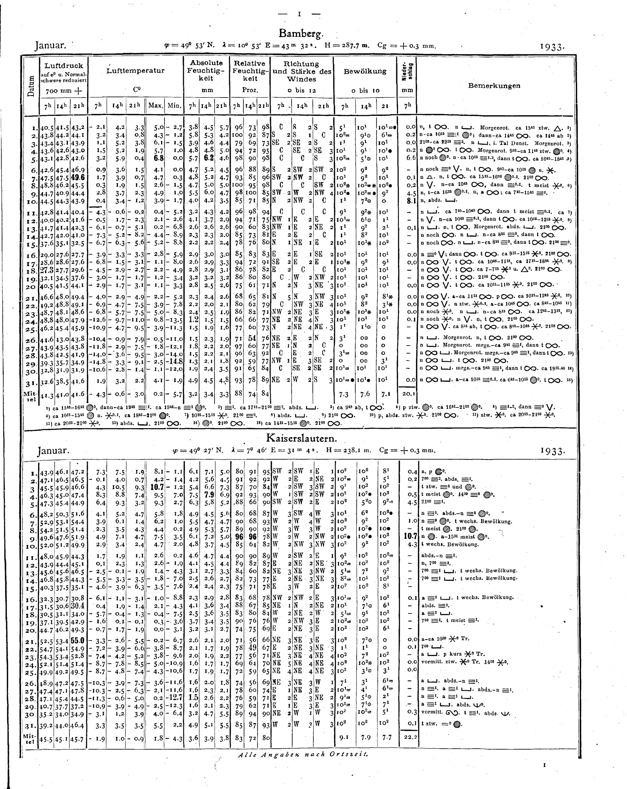 Tägliche Beobachtungen der Stationen II. Ordnung