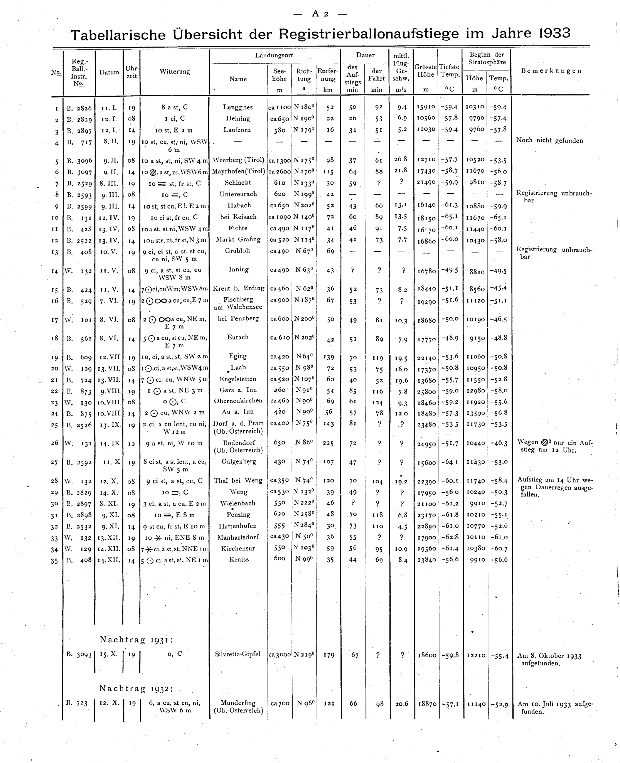 Die Münchener Registrierballonfahrten im Jahre 1933 / Peregrin Zistler und Hermann...