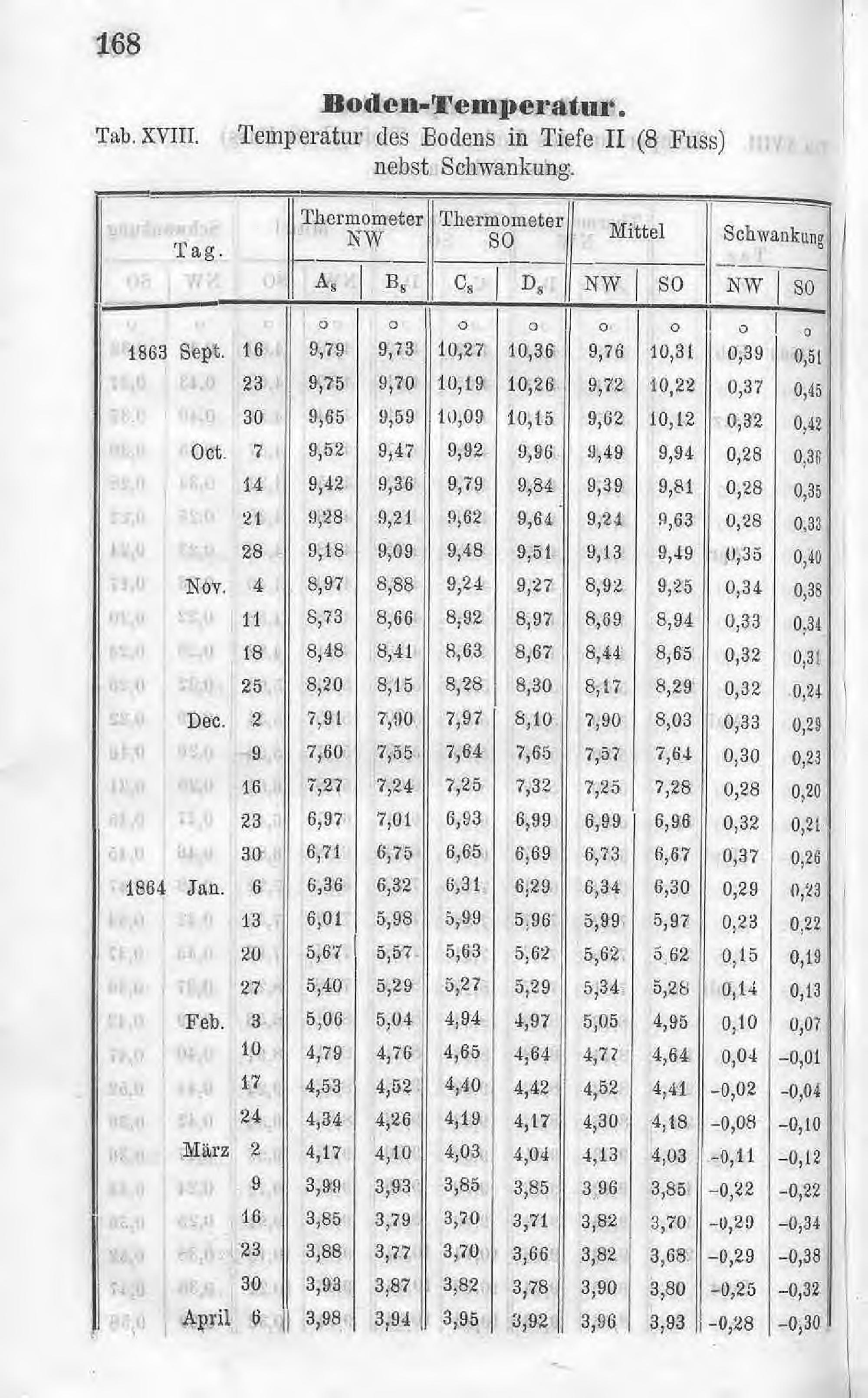 Mittlere monatliche Schwankungen der Bodentemperatur