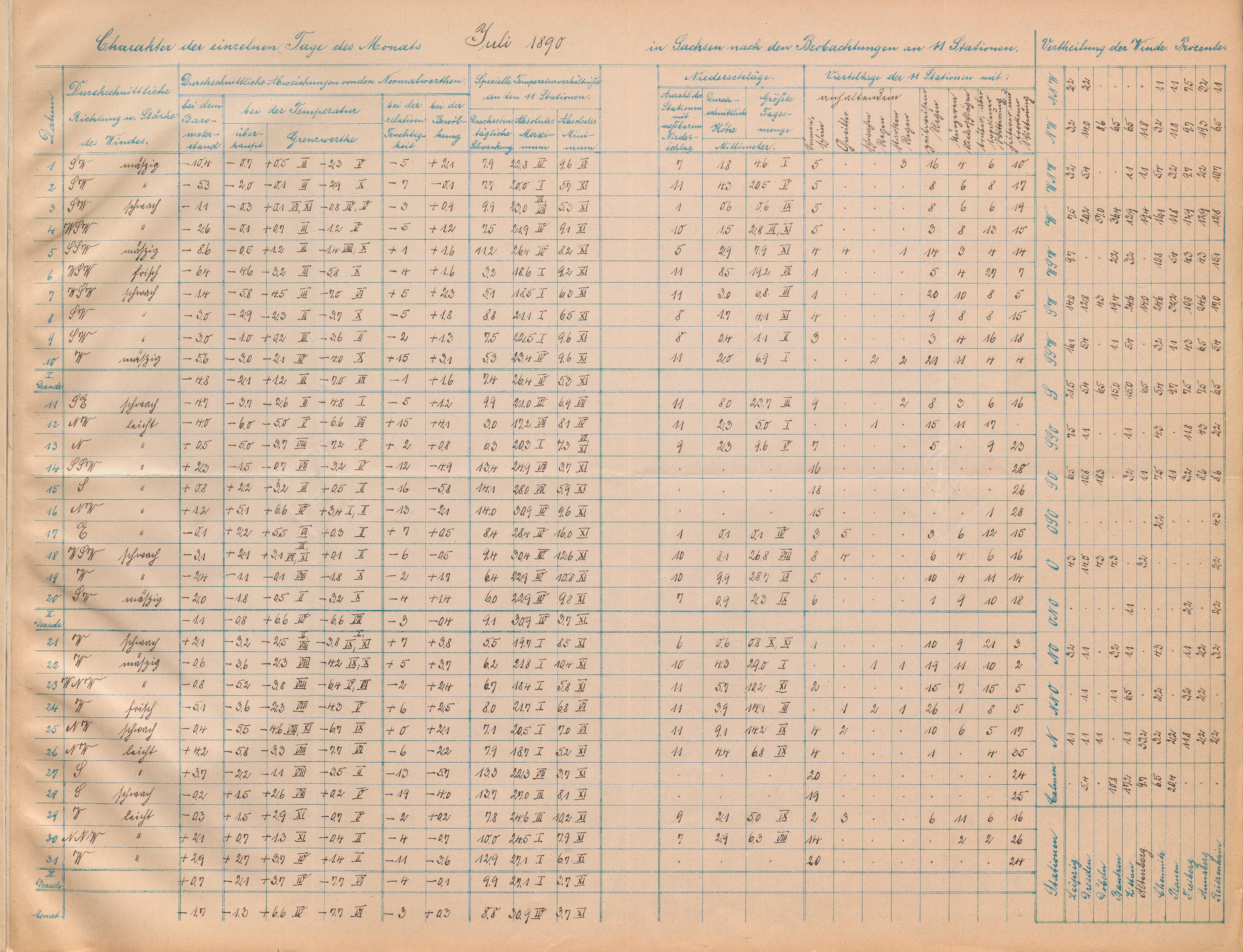 Ergebnisse der meteorologischen Beobachtungen an 11 Stationen