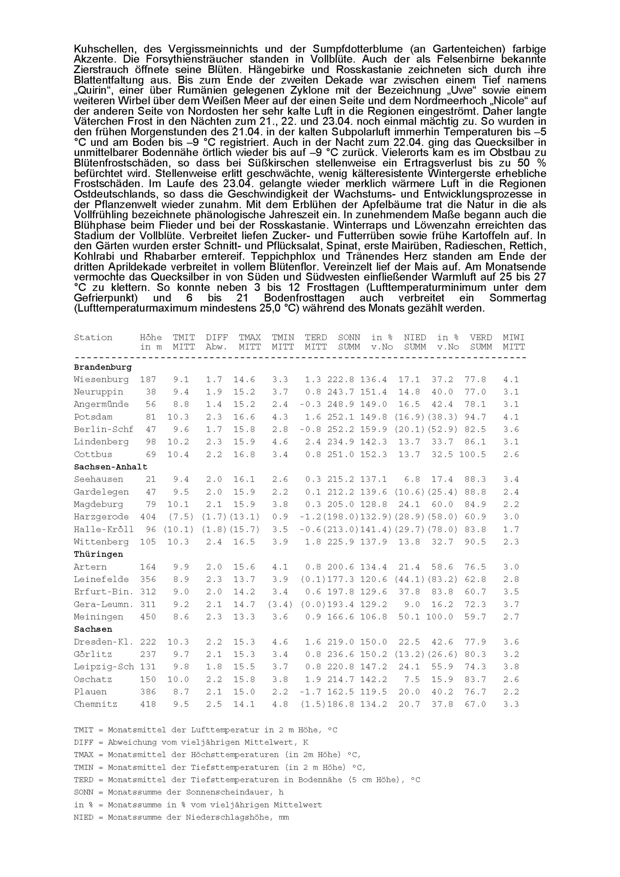 Agrarmeteorologischer Monatsbericht für Brandenburg, Sachsen-Anhalt, Thüringen und...